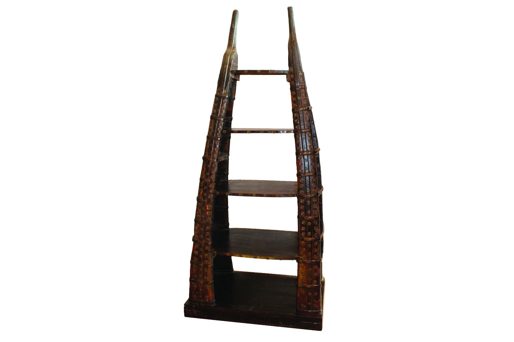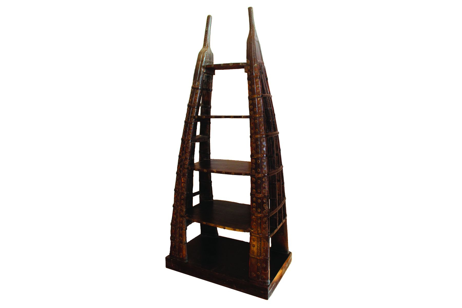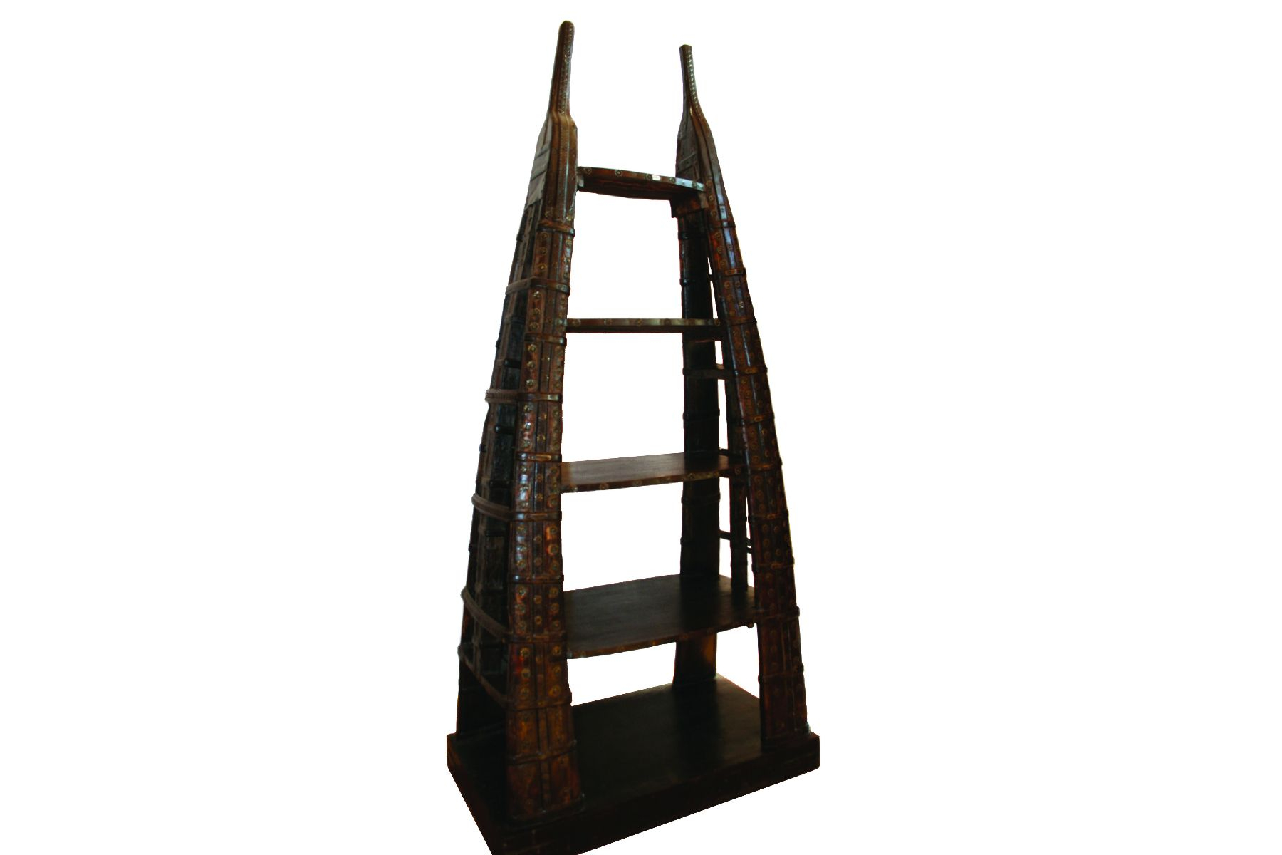 Questo splendido pezzo di straordinaria fattura è una libreria recuperata da un antico carro cammelli indiano. Il pezzo è interamente costruito in pregiato teak indiano e ricava dentro alla sua struttura arrotondata ma a punta 3 ampi ripiani aperti, ideali per raccogliere i vostri libri o i vostri ricordi.