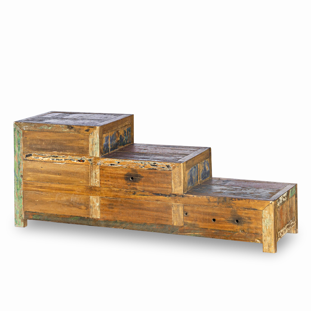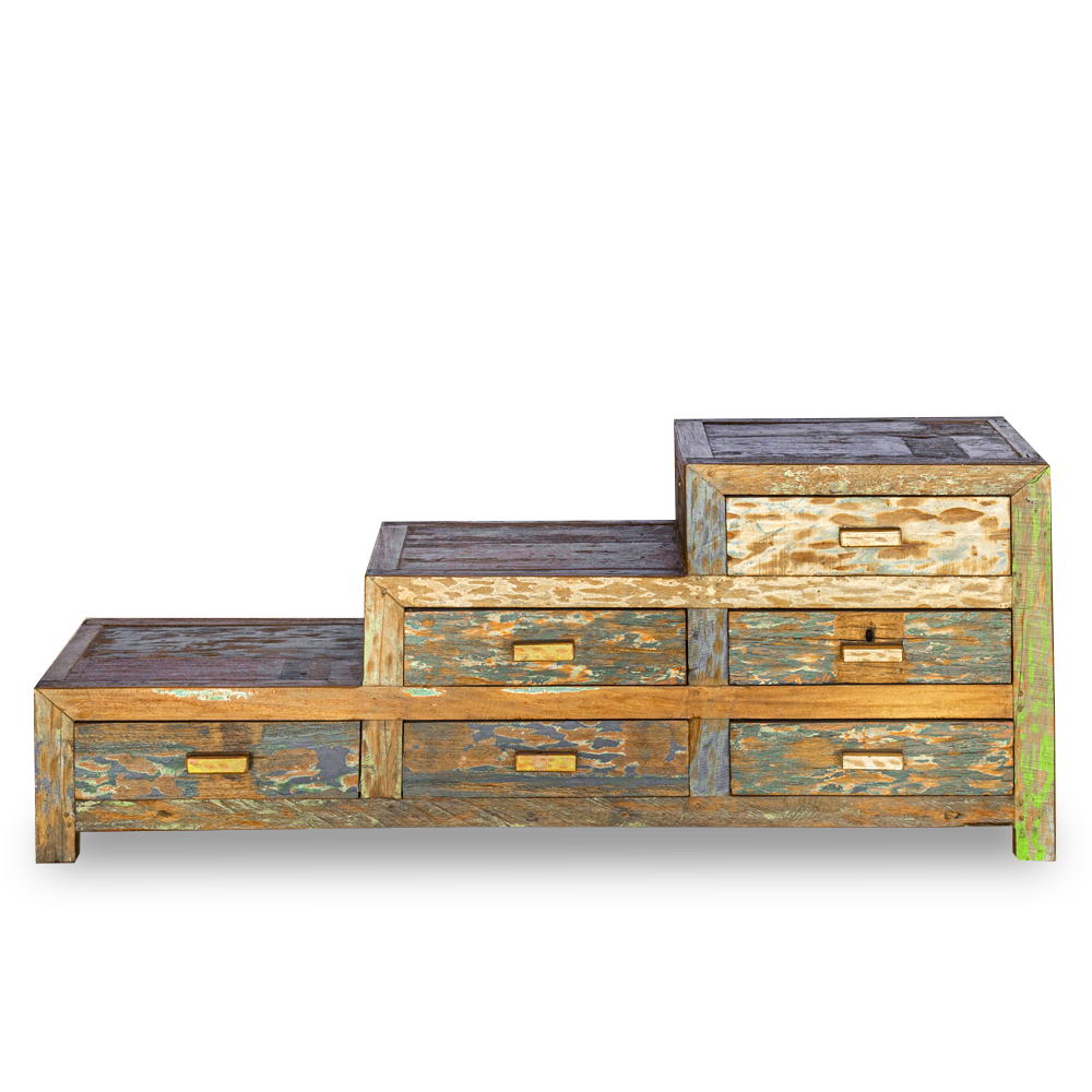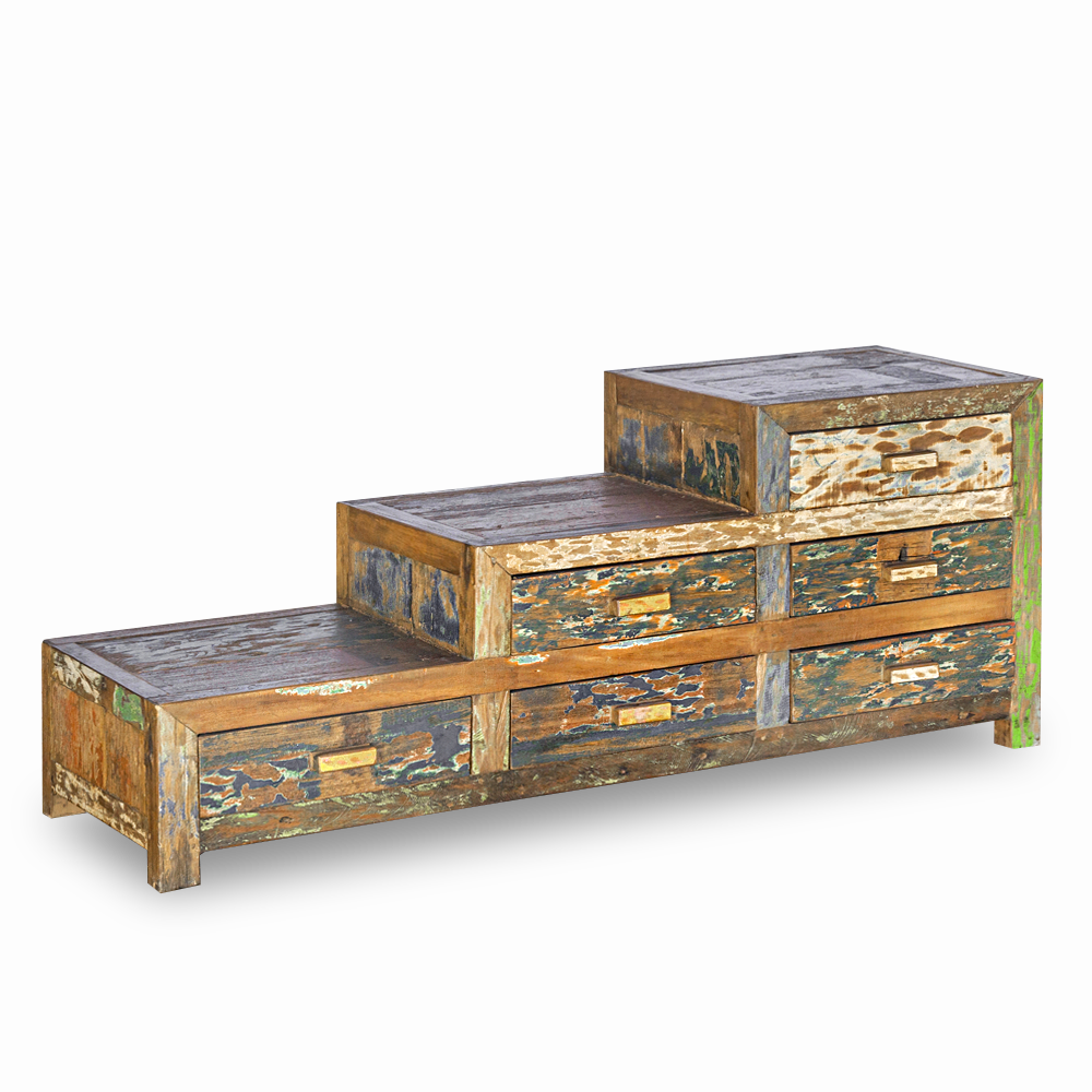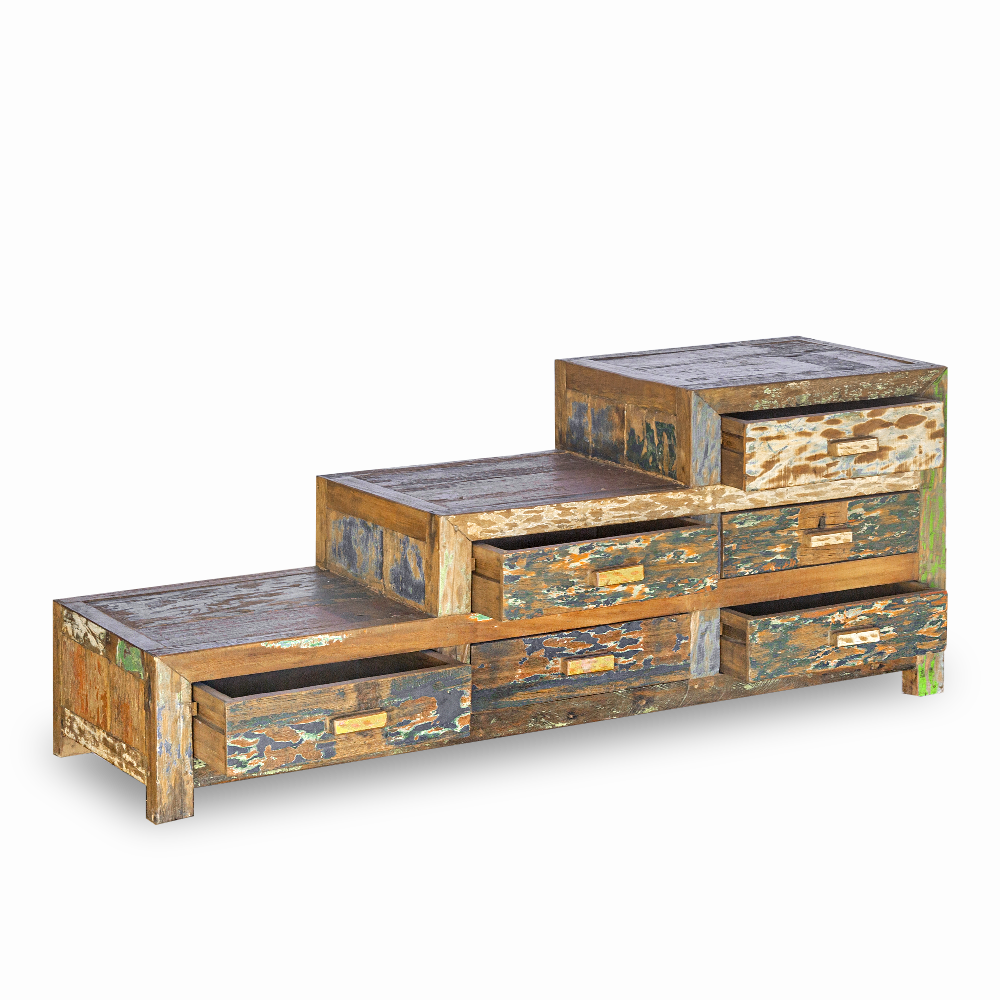 Cassettiera a scaletta in legno di teak recuperato da antiche imbarcazioni indonesiane con 6 cassetti #1074ID790