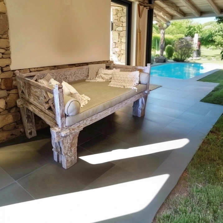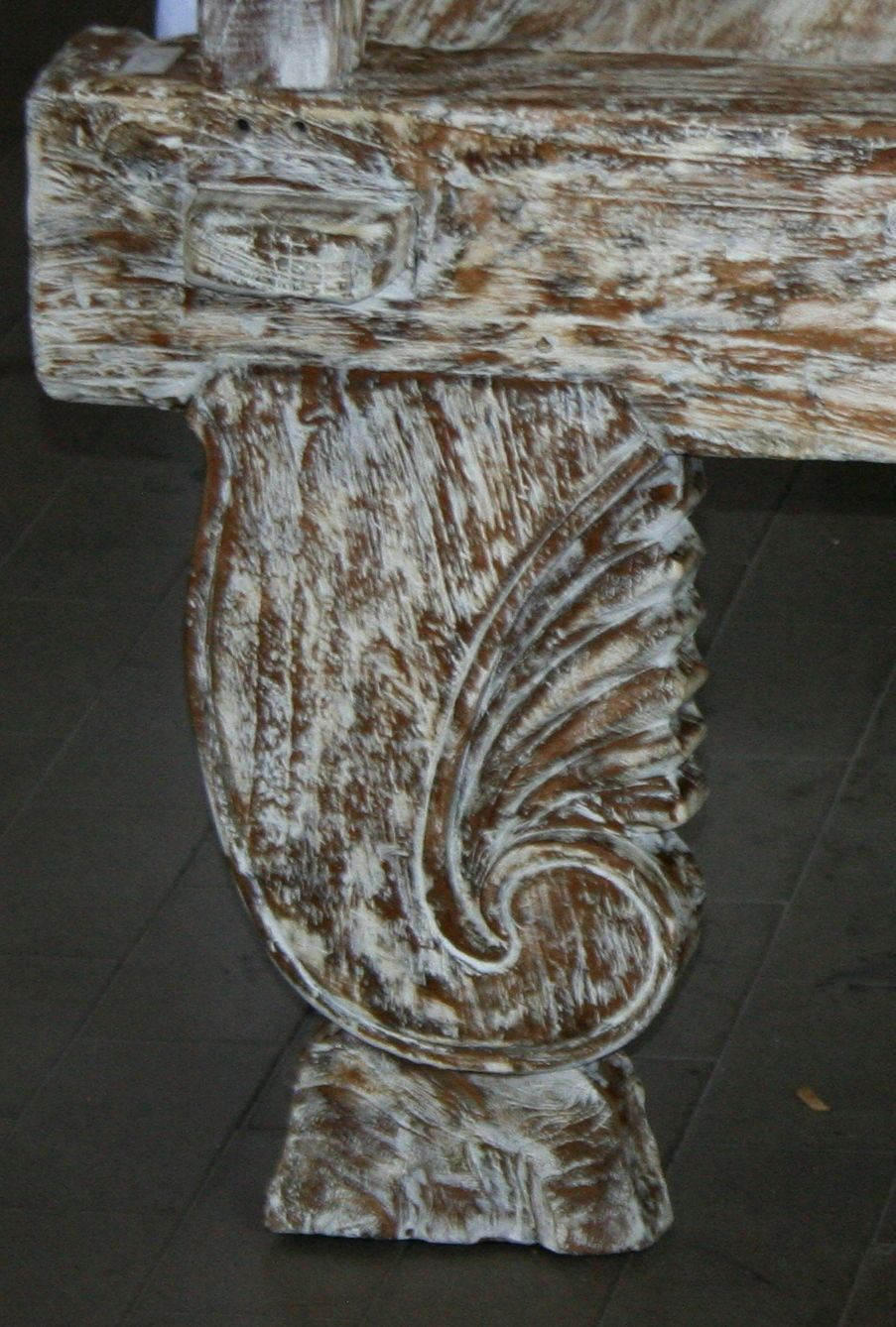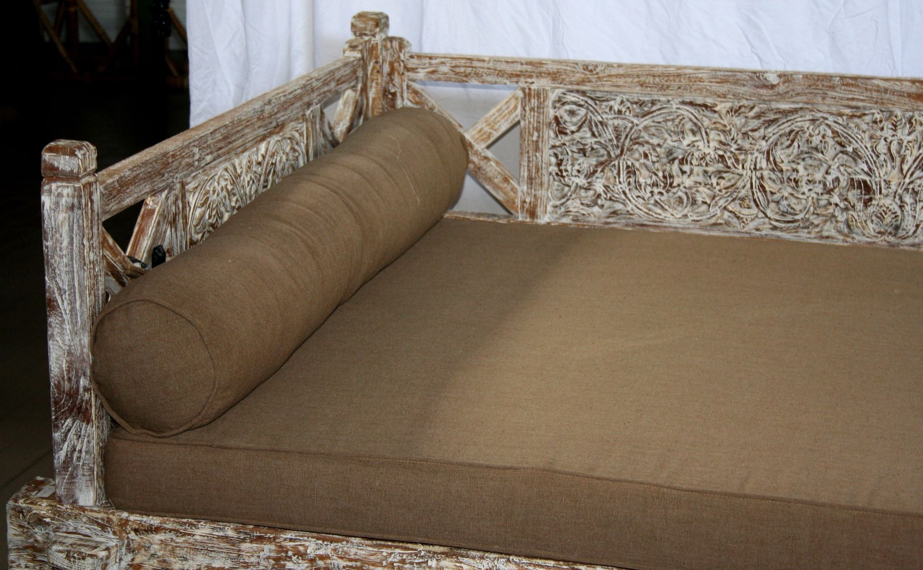 Daybed balinese in legno di teak con finitura bianco decapato ed intagli floreali #1360ID3790