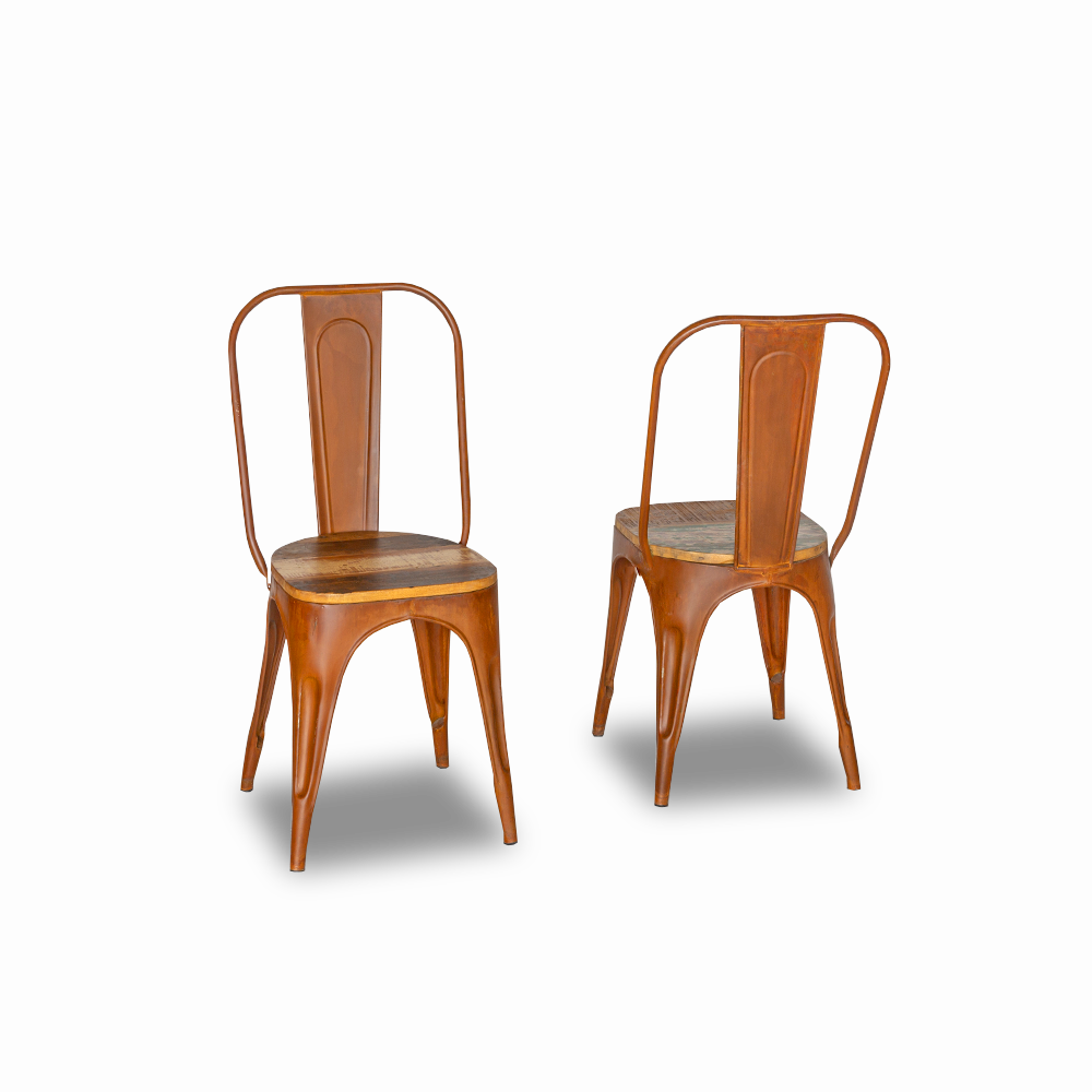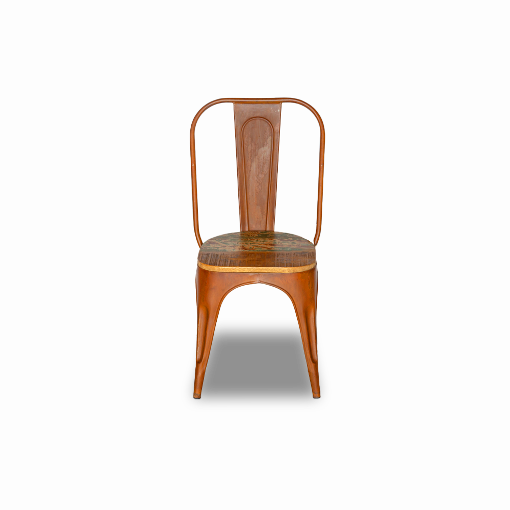 Sedia indiana in teak recuperato e ferro "mod. Sun" #1341IN149