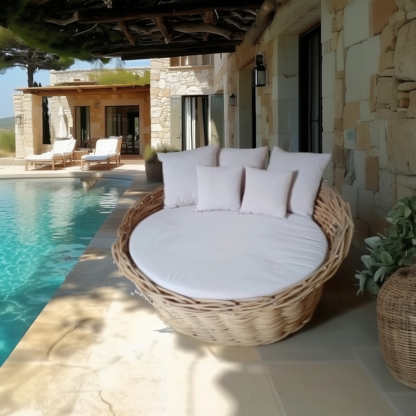 Date una nota di freschezza e di esotismo al vostro giardino con divano Rangka. Dalla forma rotonda, questo sofà intrecciato in rattan naturale vi accoglie con i suoi graziosi cuscini con fodera in puro cotone. Disponibile in due colori eleganti e luminosi, questo divano creerà un’atmosfera accogliente e darà al vostro arredo uno stile d’altri tempi.
