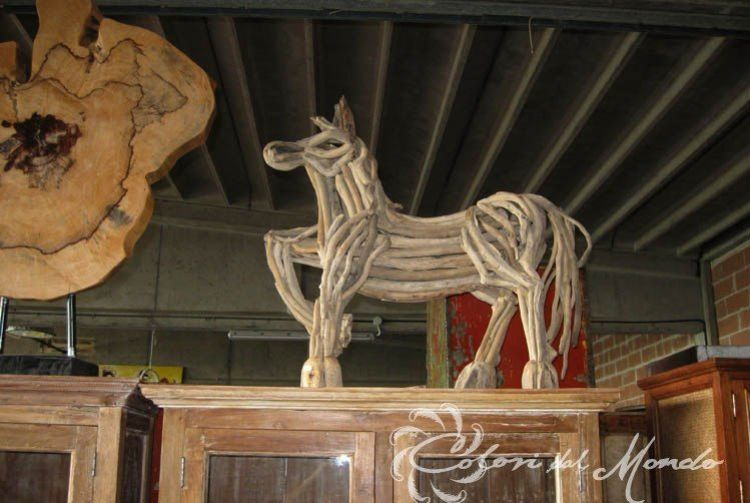 Gli artigiani Indonesiani hanno creato questo bellissimo puledro recuperando qua e là legni sulle incantevoli spiagge di Bali.