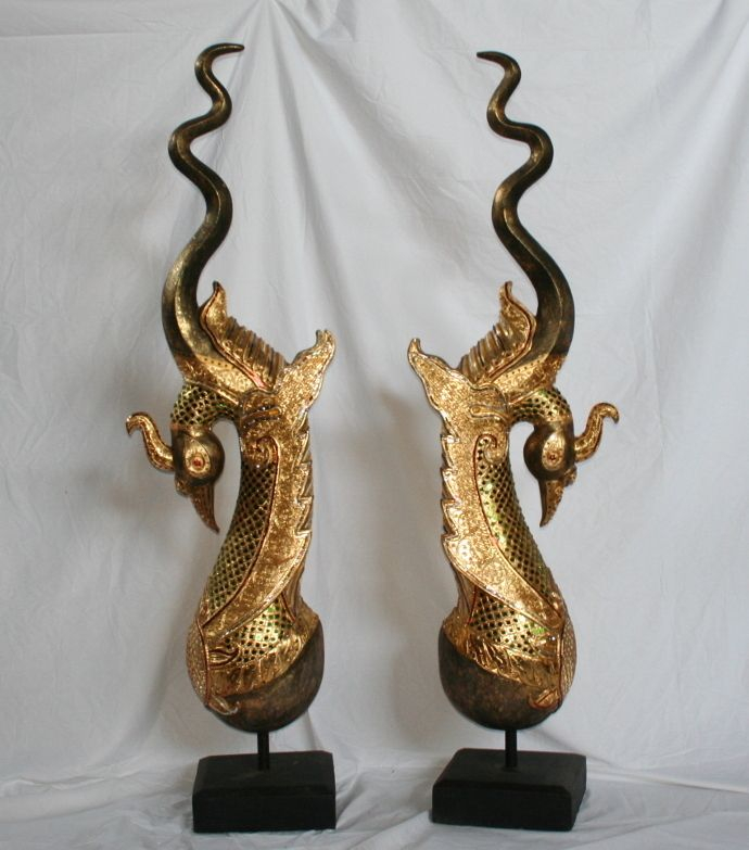 Scultura Naga dorato intagliato in legno thailandese -18%