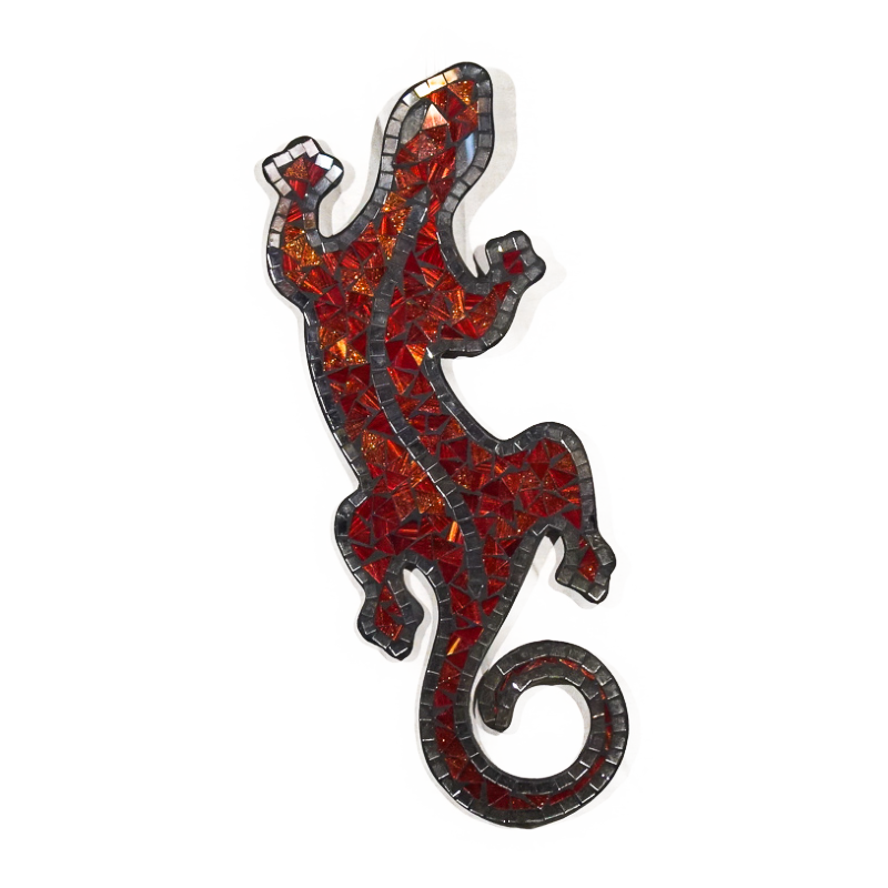 Geco in legno con specchietti - ROSSO - 50x20cm