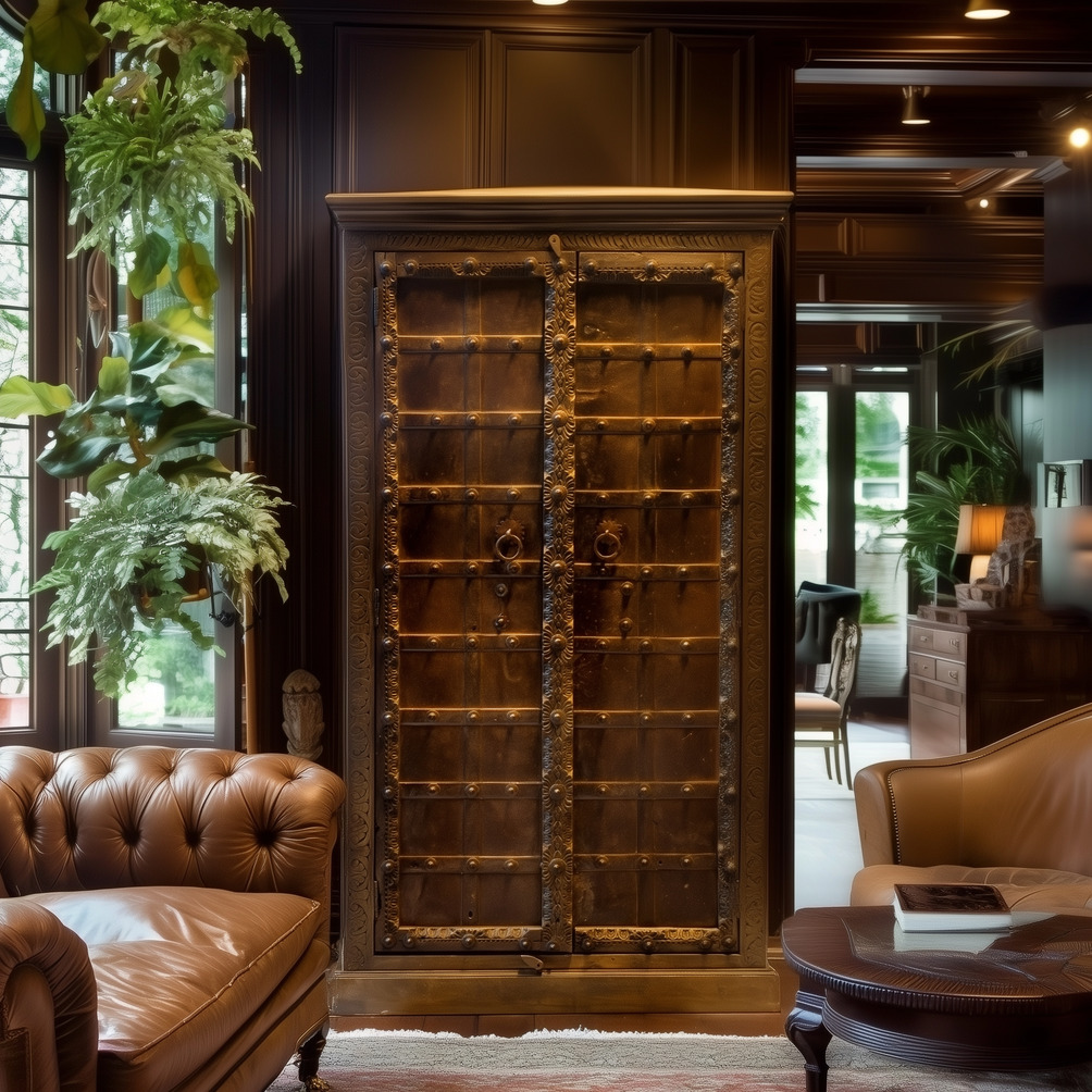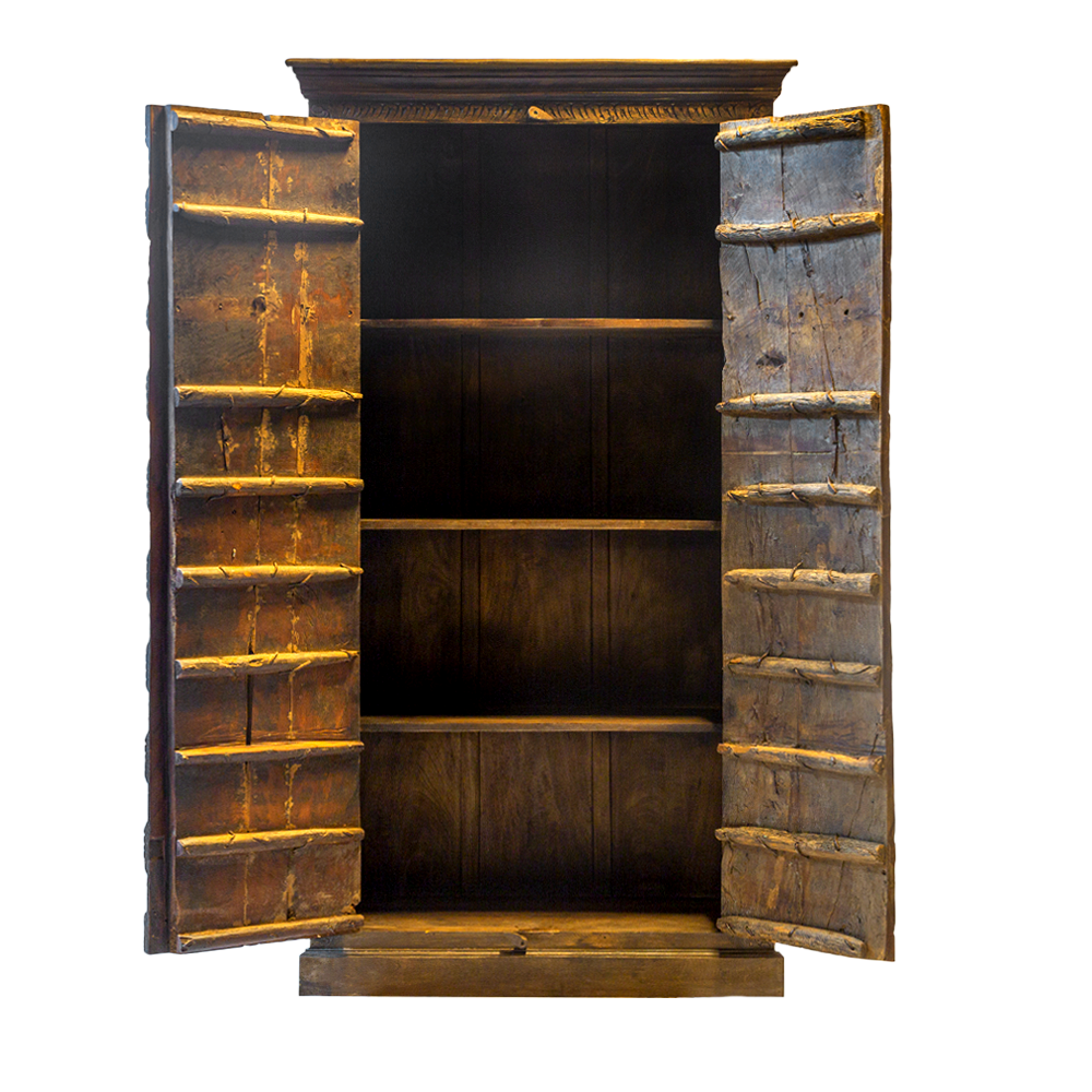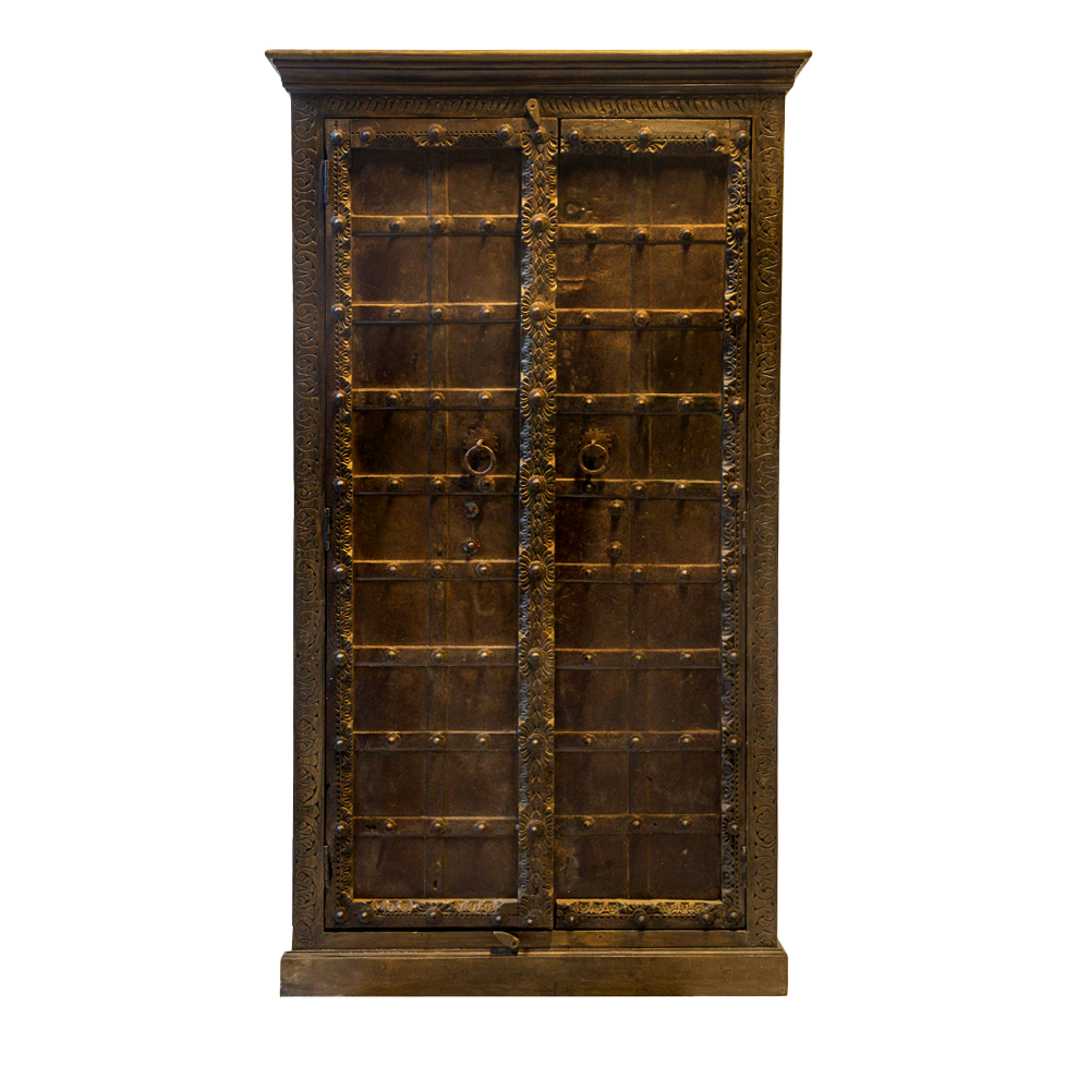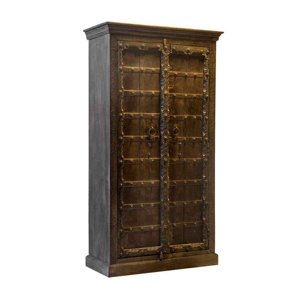 Credenza / Armadio indiano in legno di teak con 2 ante recuperate da un portale #1031IN1790