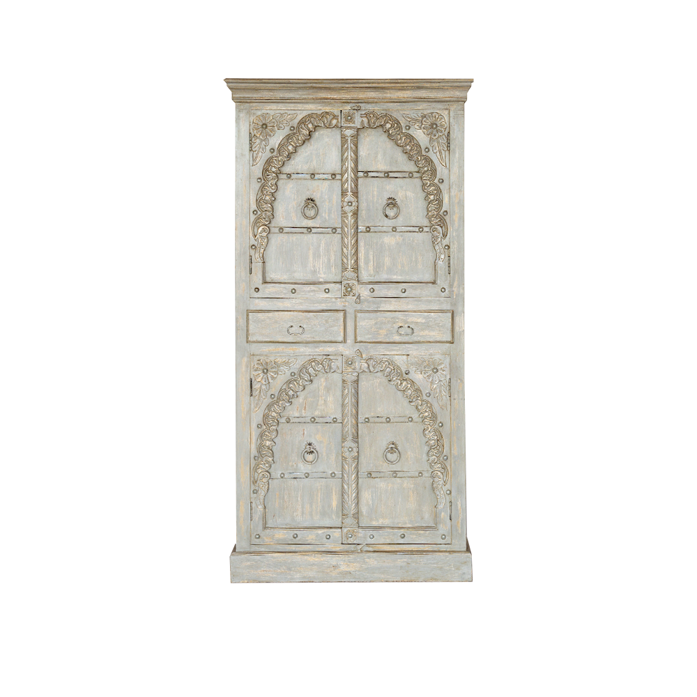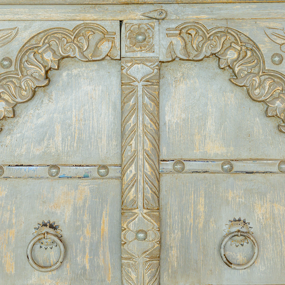 Credenza / Armadio indiano in legno di palissandro con ante forziere finitura color grigio #1030IN1790