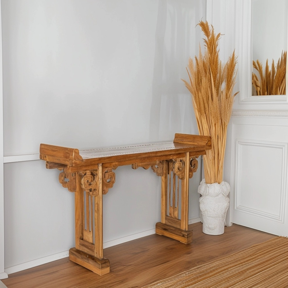 Console balinese in legno di teak mod. Pagoda con intagli floreali #1108ID1190
