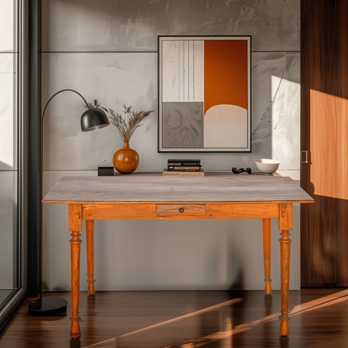 Tavolo / Scrivania in legno di teak con cassetto centrale #1257ID849 -19%