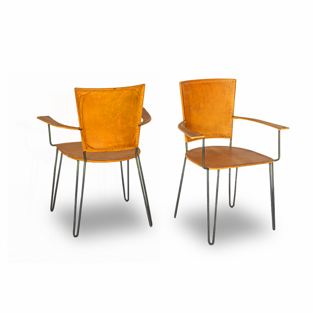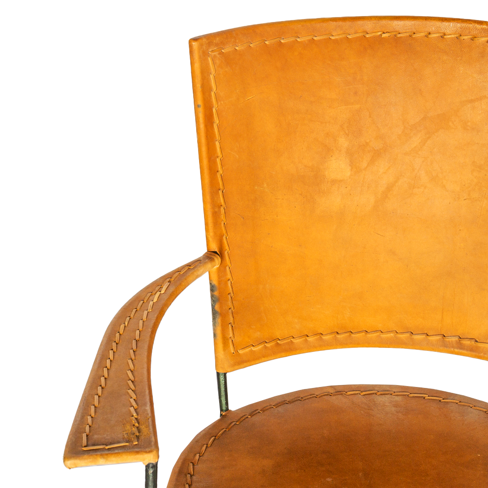 Sedia in cuoio / pelle con braccioli e gambe in ferro