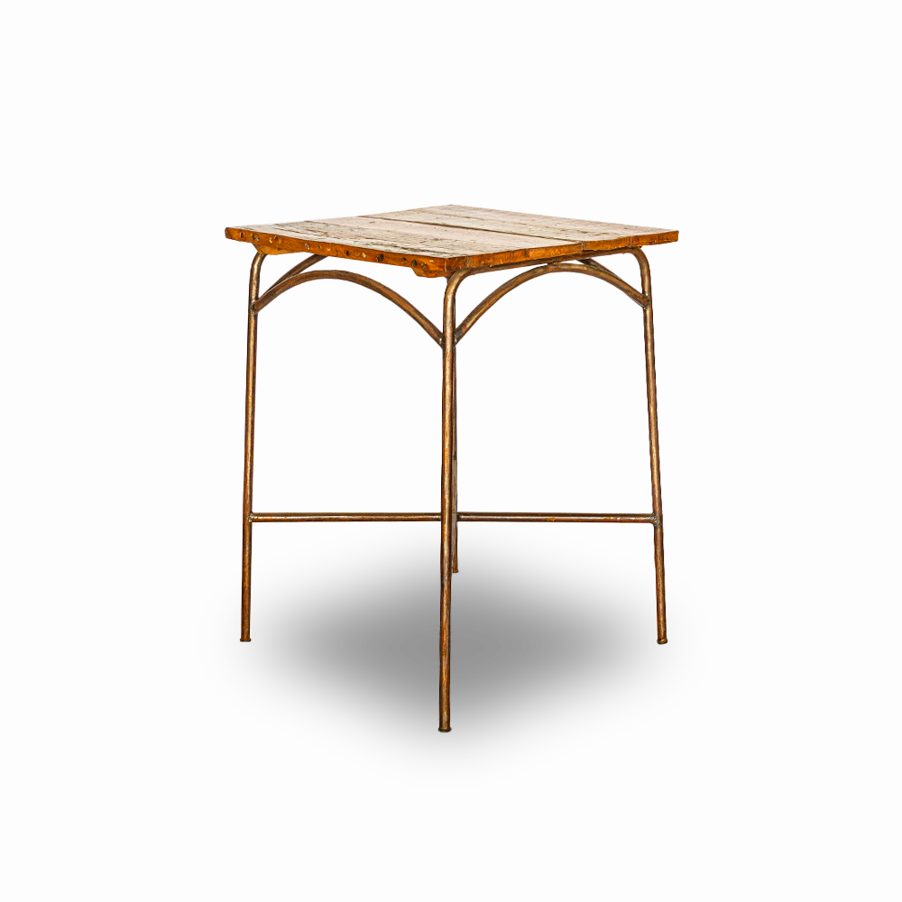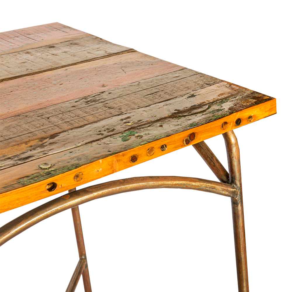 Tavolo bar con top in legno di teak recuperato dalle vecchie barche e gambe in ferro #1277ID589