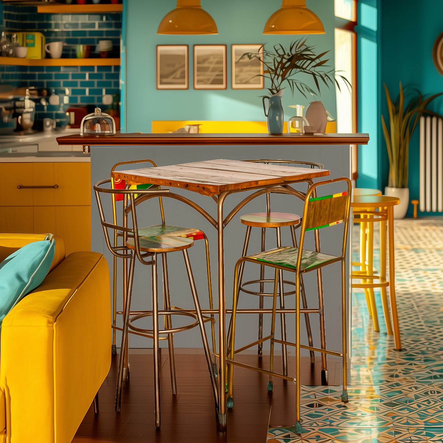 Tavolo bar con top in legno di teak recuperato dalle vecchie barche e gambe in ferro #1277ID589 -18%