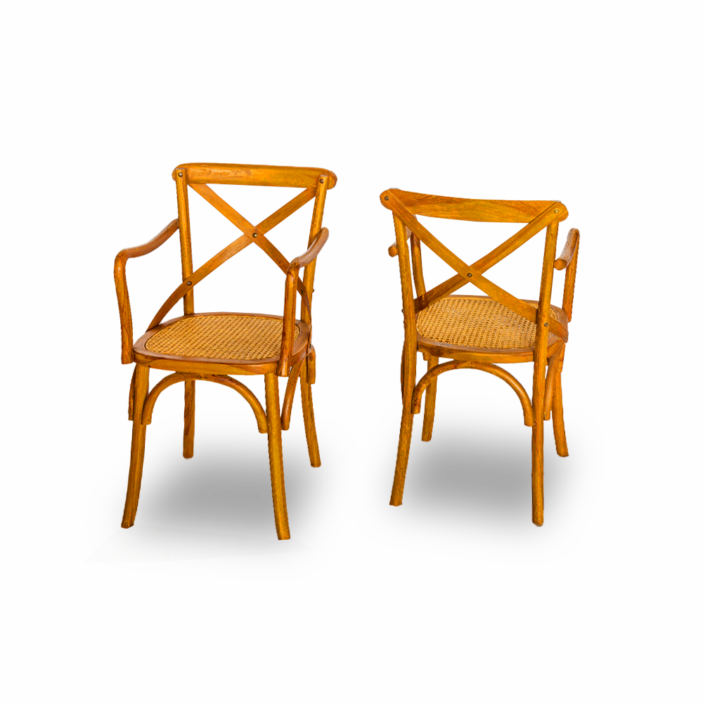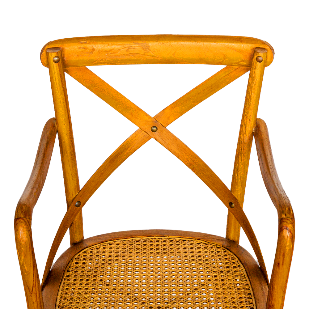 Sedia con braccioli in legno di teak con seduta intreccio rattan naturale #1323ID190