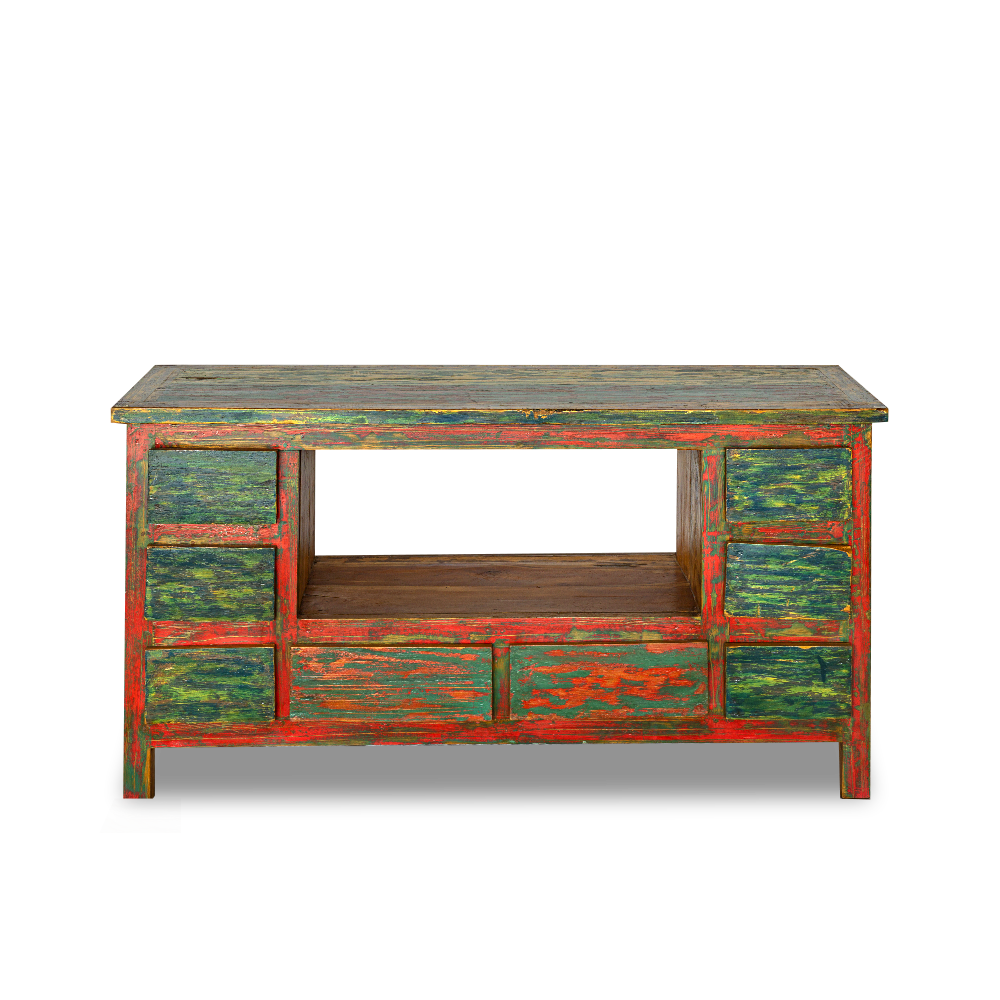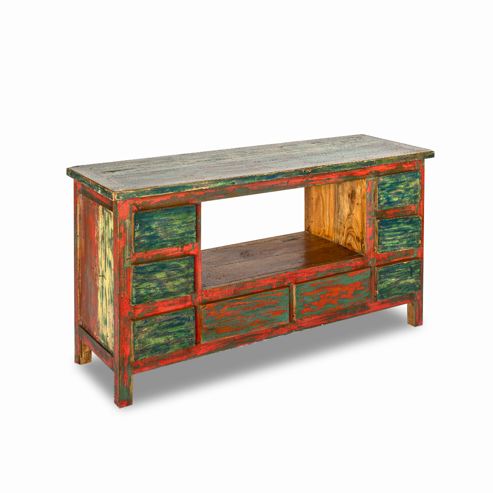 Porta TV balinese in legno di teak recuperato dalle vecchie imbarcazioni con 8 cassetti ed un vano centrale #1220ID690