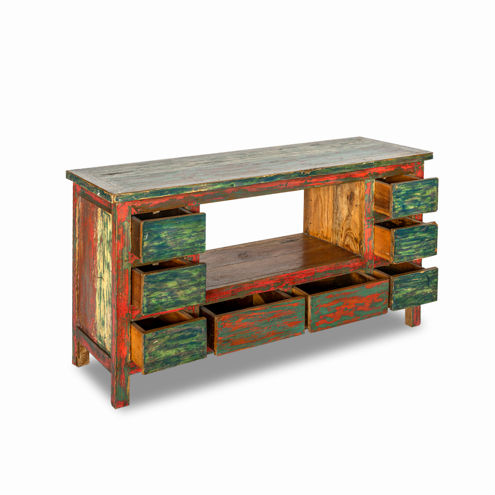 Porta TV balinese in legno di teak recuperato dalle vecchie imbarcazioni con 8 cassetti ed un vano centrale #1220ID690 -19%