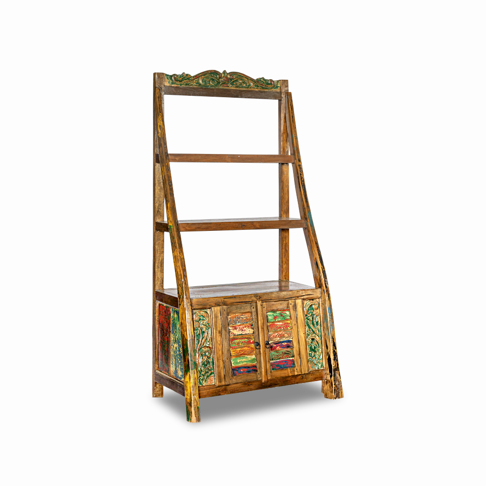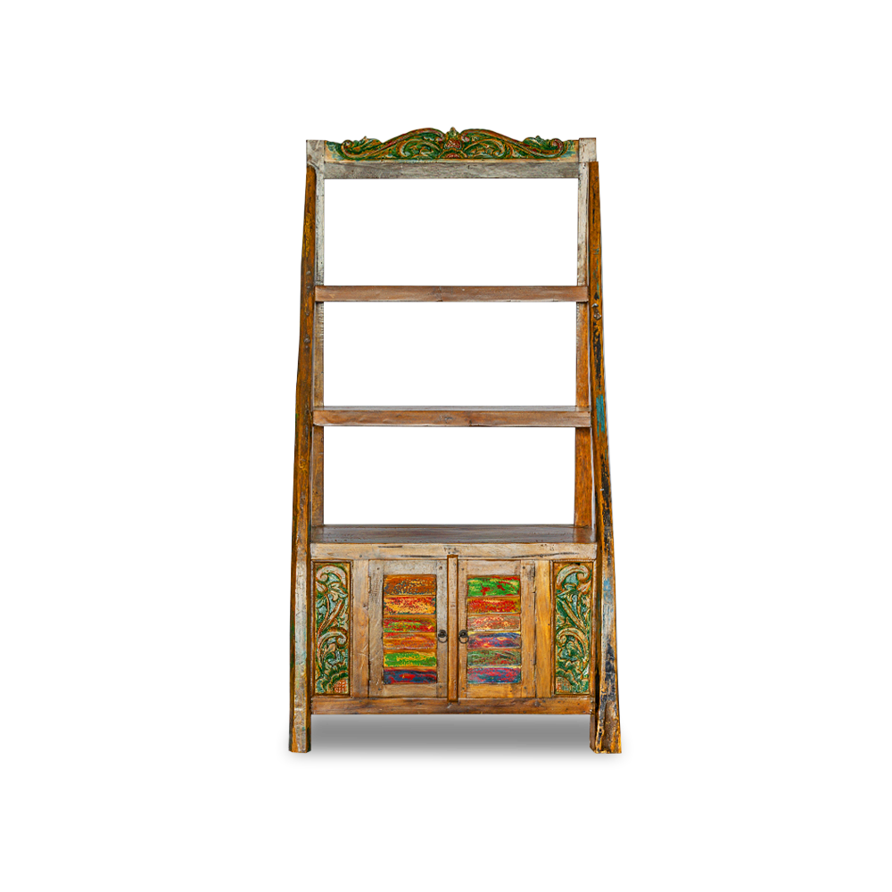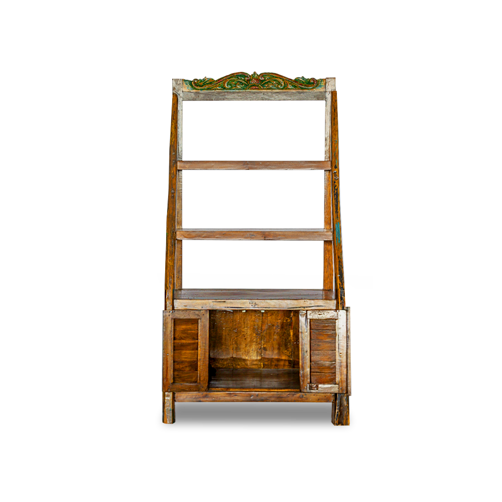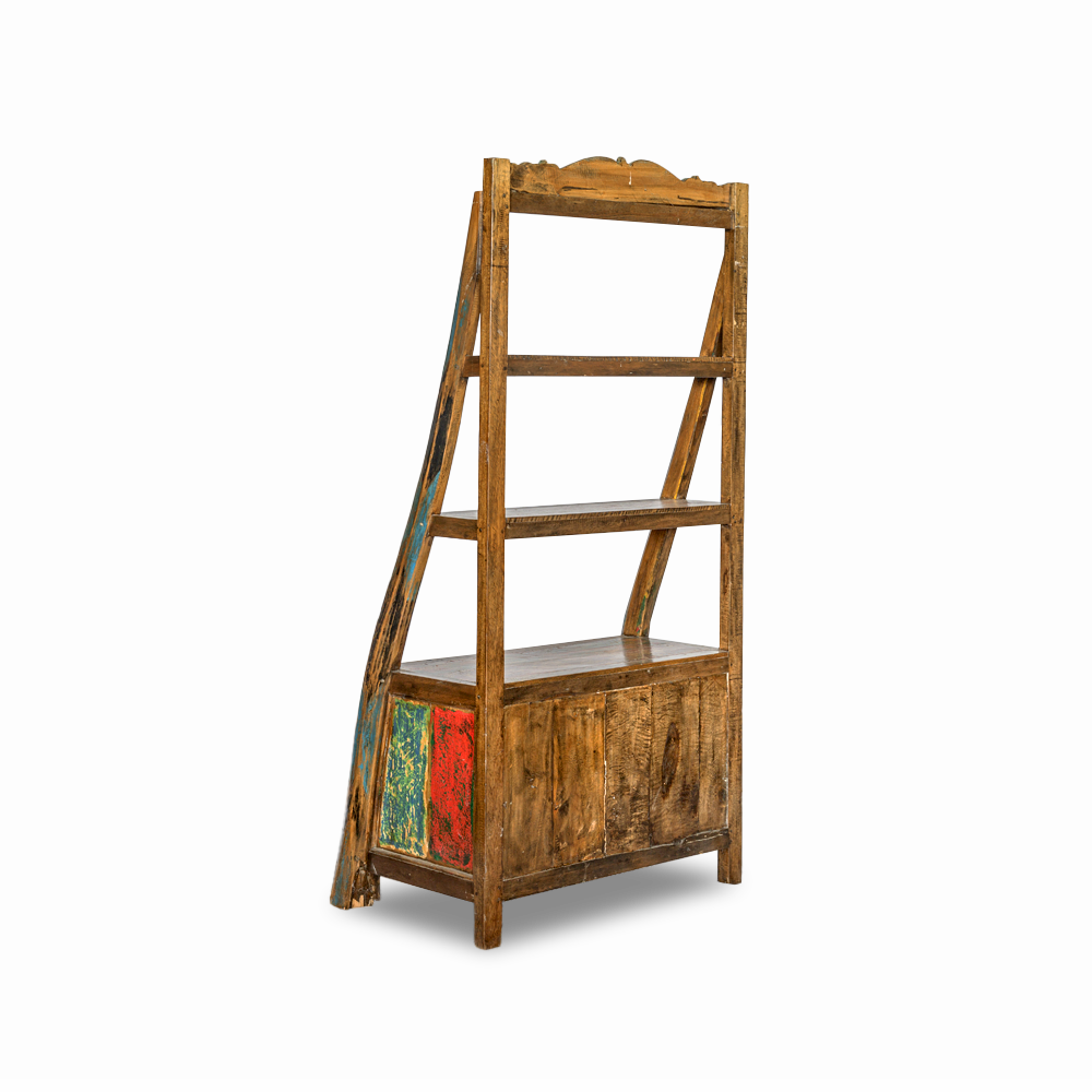 Libreria indonesiana in legno di teak recuperato dalle vecchie barche con 3 ripiani e 2 ante inferiori #1184ID1190