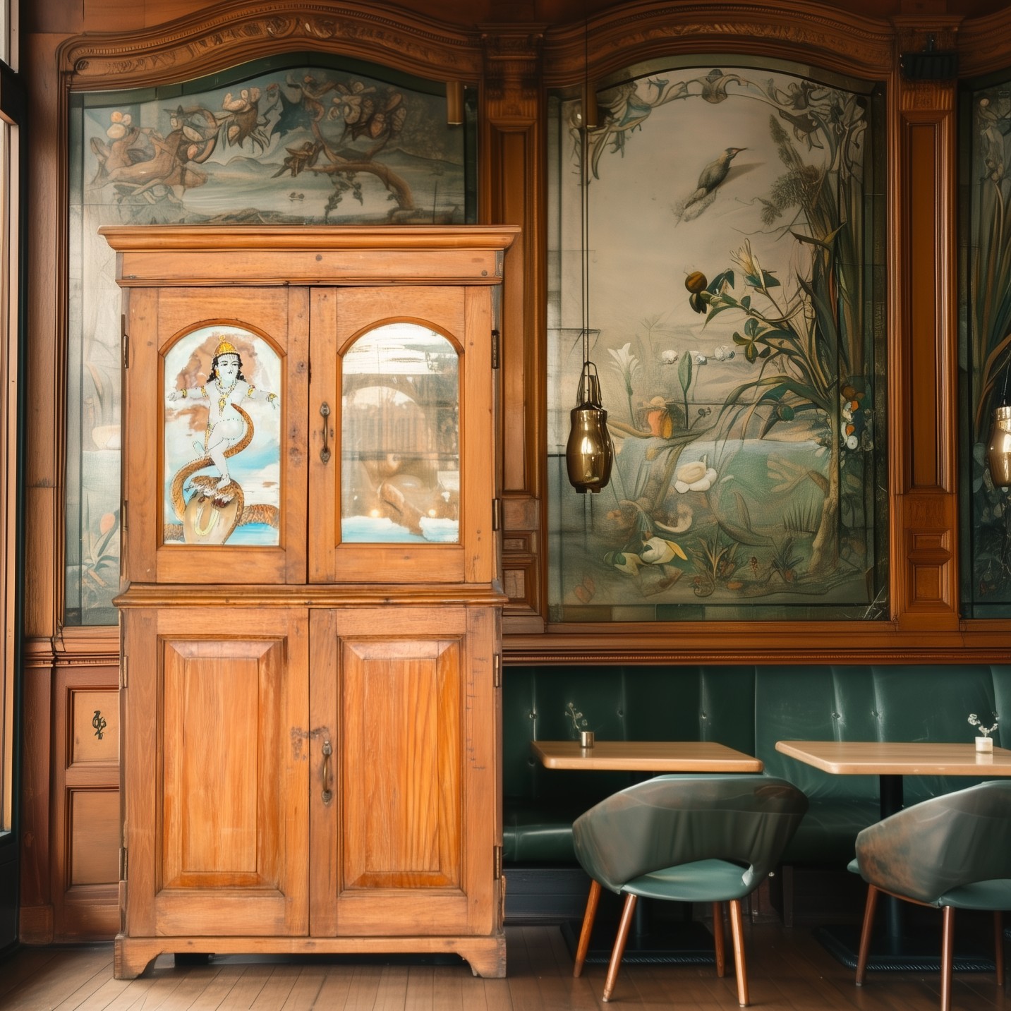 Credenza indiana antica in teak con vetro dipinto con raffigurazione del Dio Shiva #1021IN1590 -18%