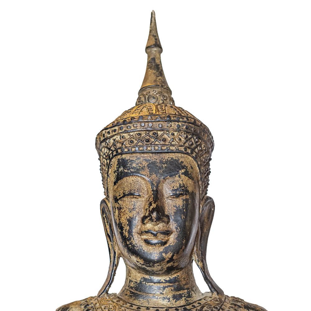 Statua Buddha in legno thailandese intagliata a mano Cambogia antique -18%