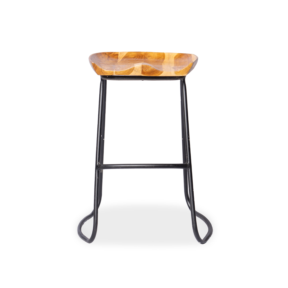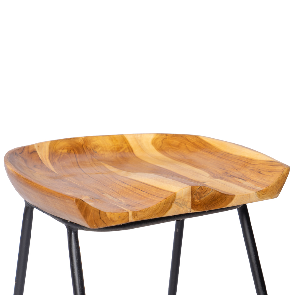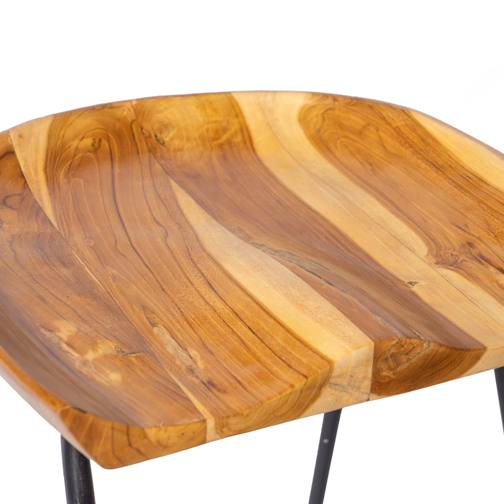 Sgabello con seduta in legno di teak naturale e gambe stilizzate in ferro #1369ID349