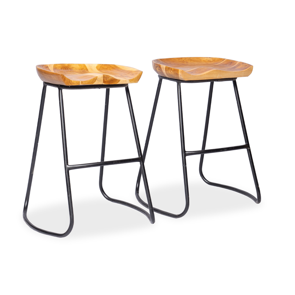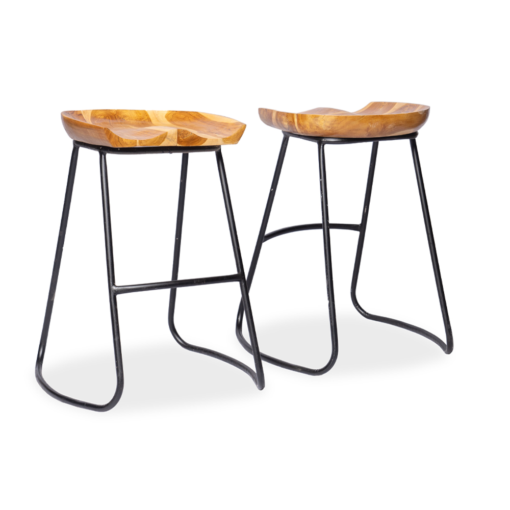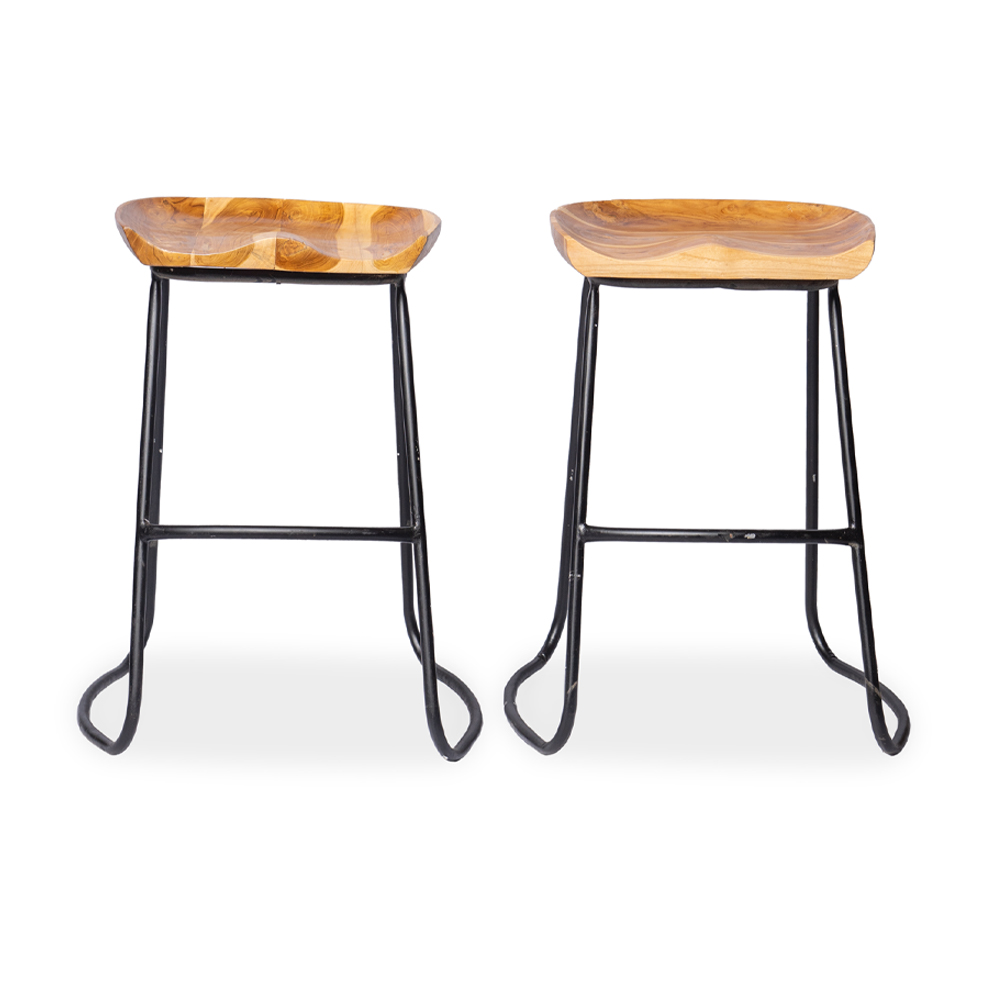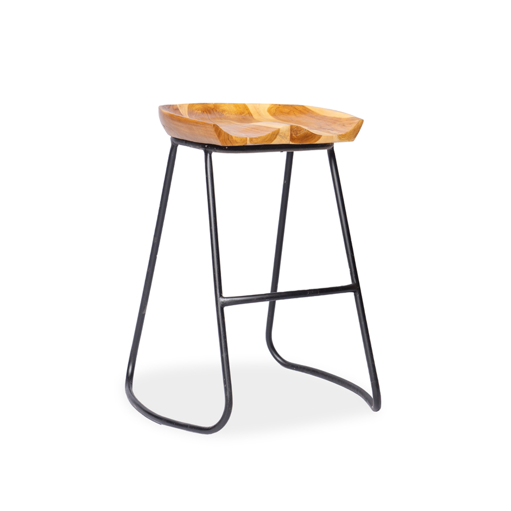 Sgabello con seduta in legno di teak naturale e gambe stilizzate in ferro #1369ID349