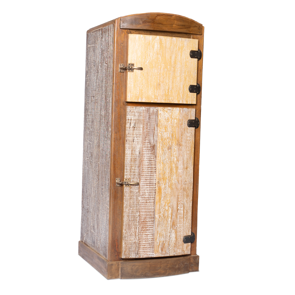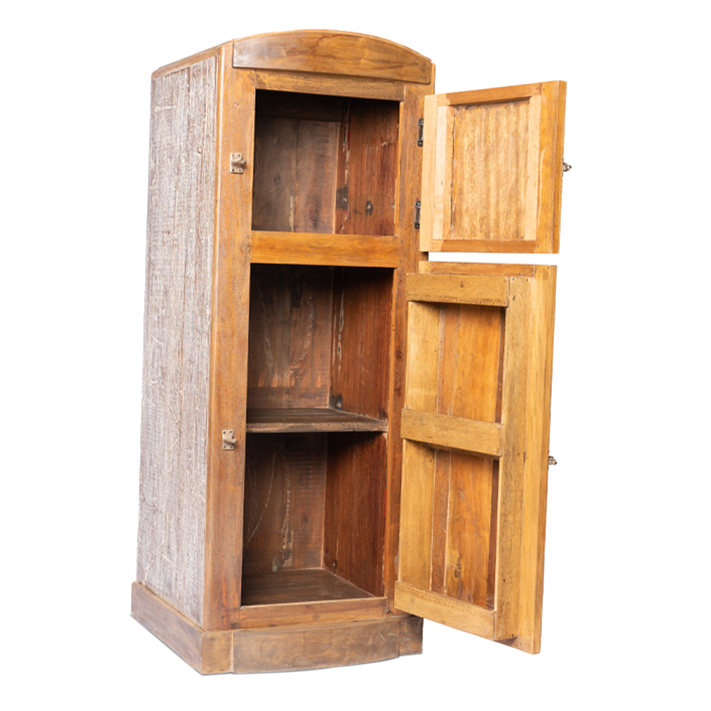 Credenza / Armadietto indonesiano con 2 ante "mod. vecchia ghiacciaia" in legno di teak recuperato dalle vecchie imbarcazioni finitura naturale#1125ID1890