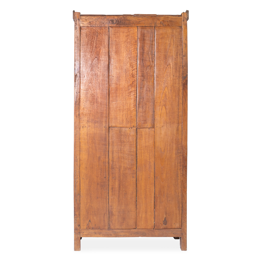 Provenienza: India del Nord, Rajasthan Dimensioni (massimo ingombro): lunghezza cm 90 x profondità cm 52 x altezza cm 180 Materiali: legno massello di mango con ante realizzate in legno di teak recuperato da antichi portali, fregi architettonici e timbri in legno utilizzati per la stampa dei tessuti Lavorazione: intaglio e assemblaggio artigianale, finitura naturale con mantenimento della patina originale Struttura: due ampie ante frontali con chiusura a battente, interno spazioso con ripiani in legno massello Autenticità: non esiste un altro armadio uguale: ogni intaglio, ogni timbro e ogni frammento antico ne fanno un’opera irripetibile di artigianato indiano Perchè sceglierlo: È un capolavoro di artigianato, nato dal recupero di elementi antichi carichi di significato Ogni dettaglio inciso racconta simboli di protezione, prosperità e buon auspicio Dona calore, forza e fascino alla casa grazie alle sfumature naturali del legno di mango Trasforma ogni ambiente in uno spazio d’anima, dove storia e design si incontrano Sono un armadio nato a Jaipur, in India e porto con me la memoria di un tempo lontano. Le mie ante raccontano un mosaico di legni antichi, provenienti da fregi, portali e antichi timbri che un tempo venivano usati per la stampa dei tessuti nelle botteghe artigiane del Rajasthan. Ogni frammento è unico, inciso a mano, e custodisce simboli di protezione e armonia tramandati dalla tradizione indiana. Nel tuo spazio saprò unire la raffinatezza dell’Oriente alla funzionalità contemporanea, aggiungendo calore, carattere e un tocco di mistero che catturerà ogni sguardo. Importato da Colori dal Mondo s.r.l.