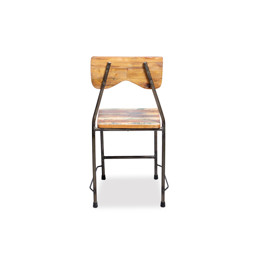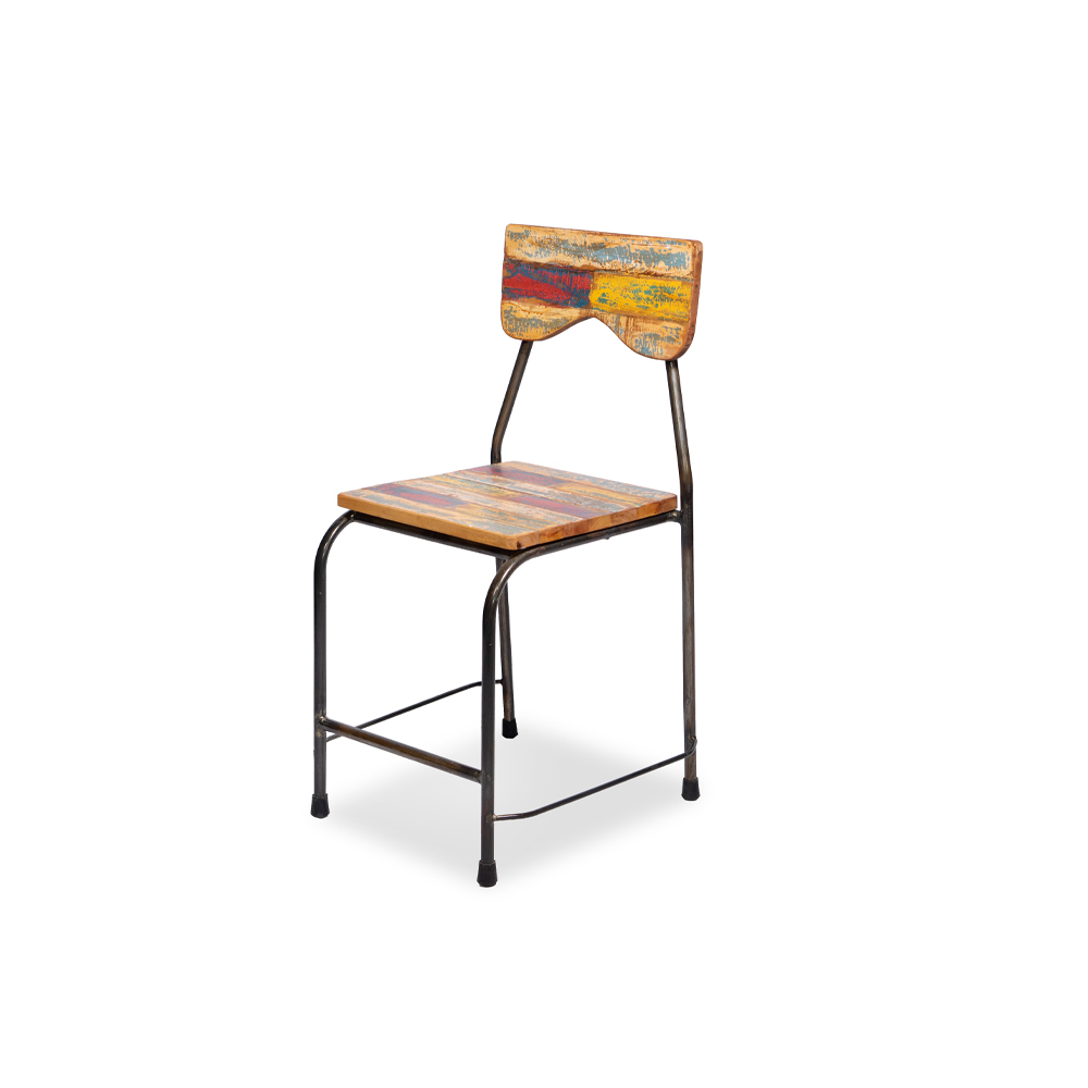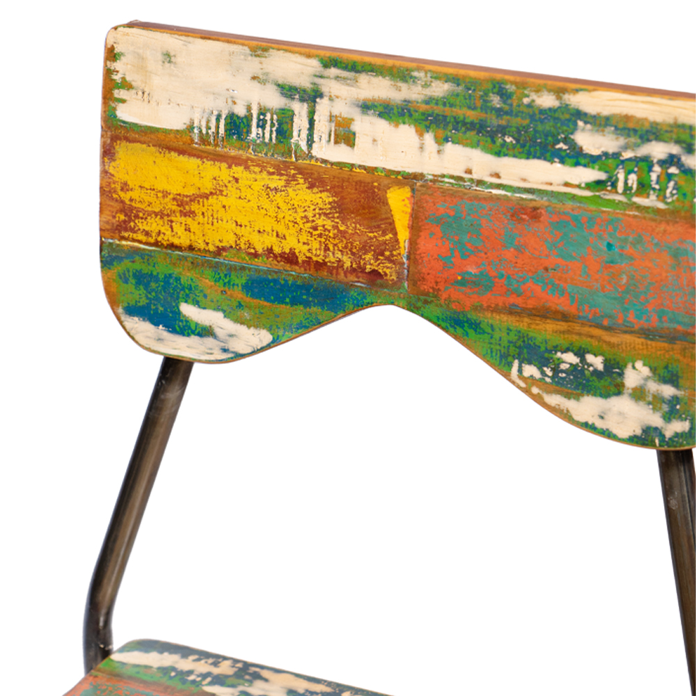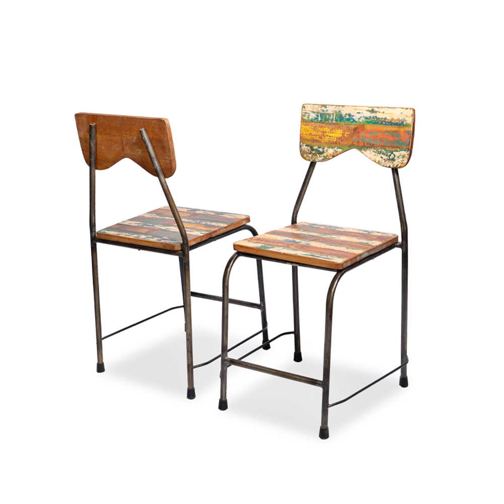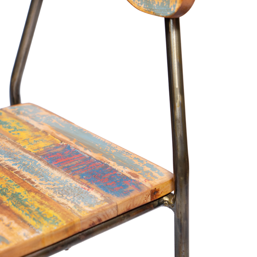 Sedia in ferro con schienale e seduta con lavorazione a mosaico in legno di teak recuperato dalle vecchie barche -20%