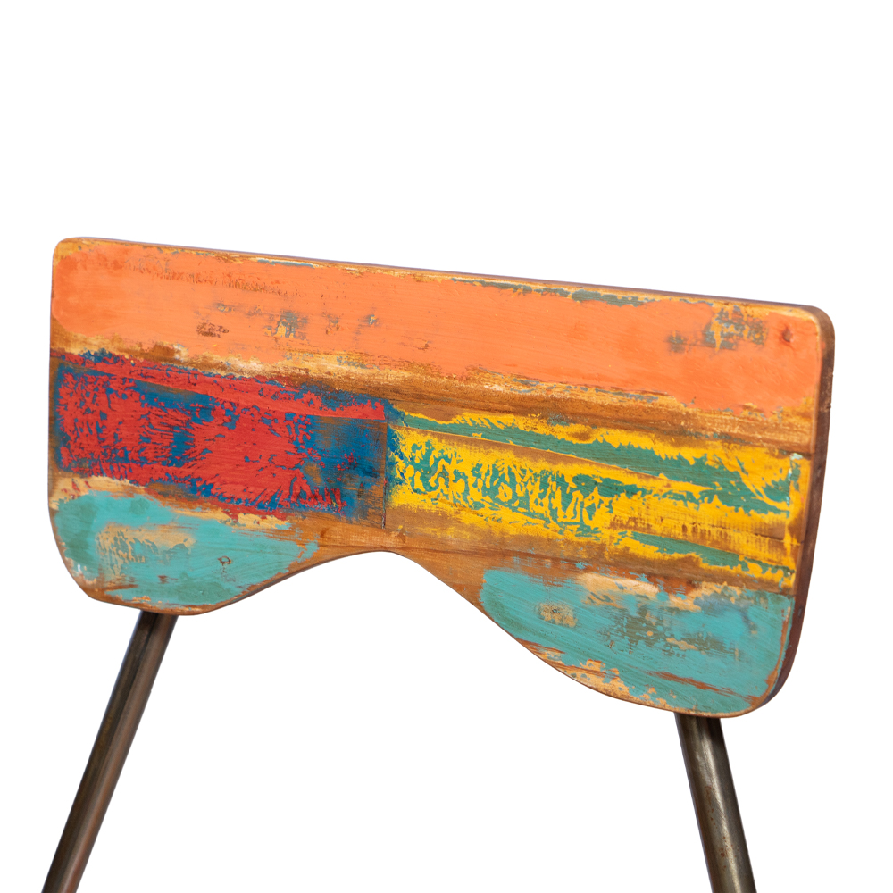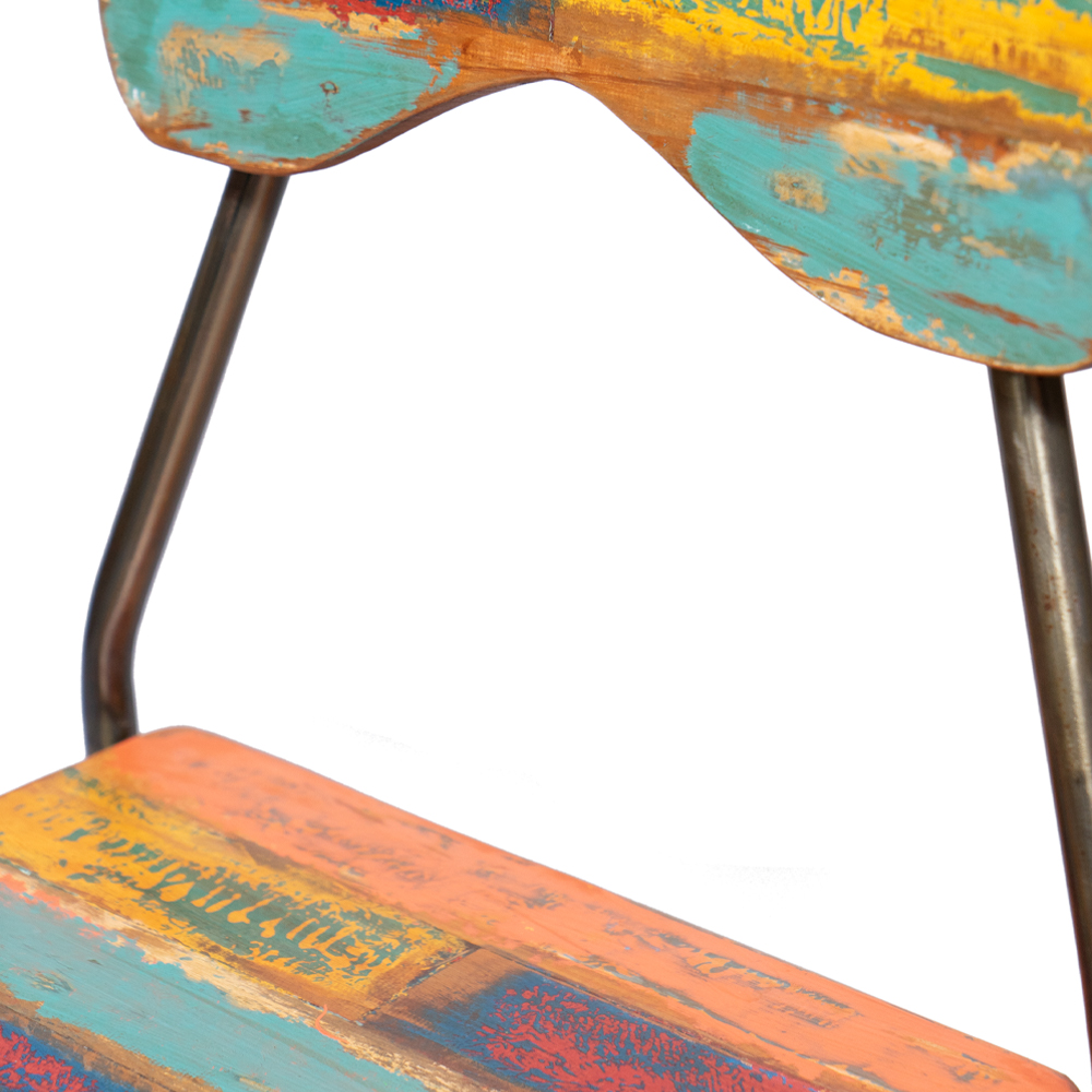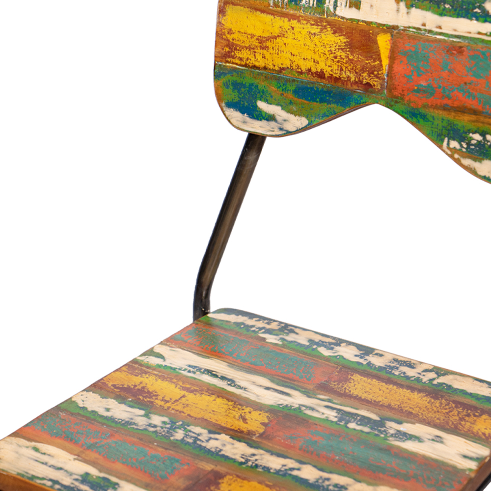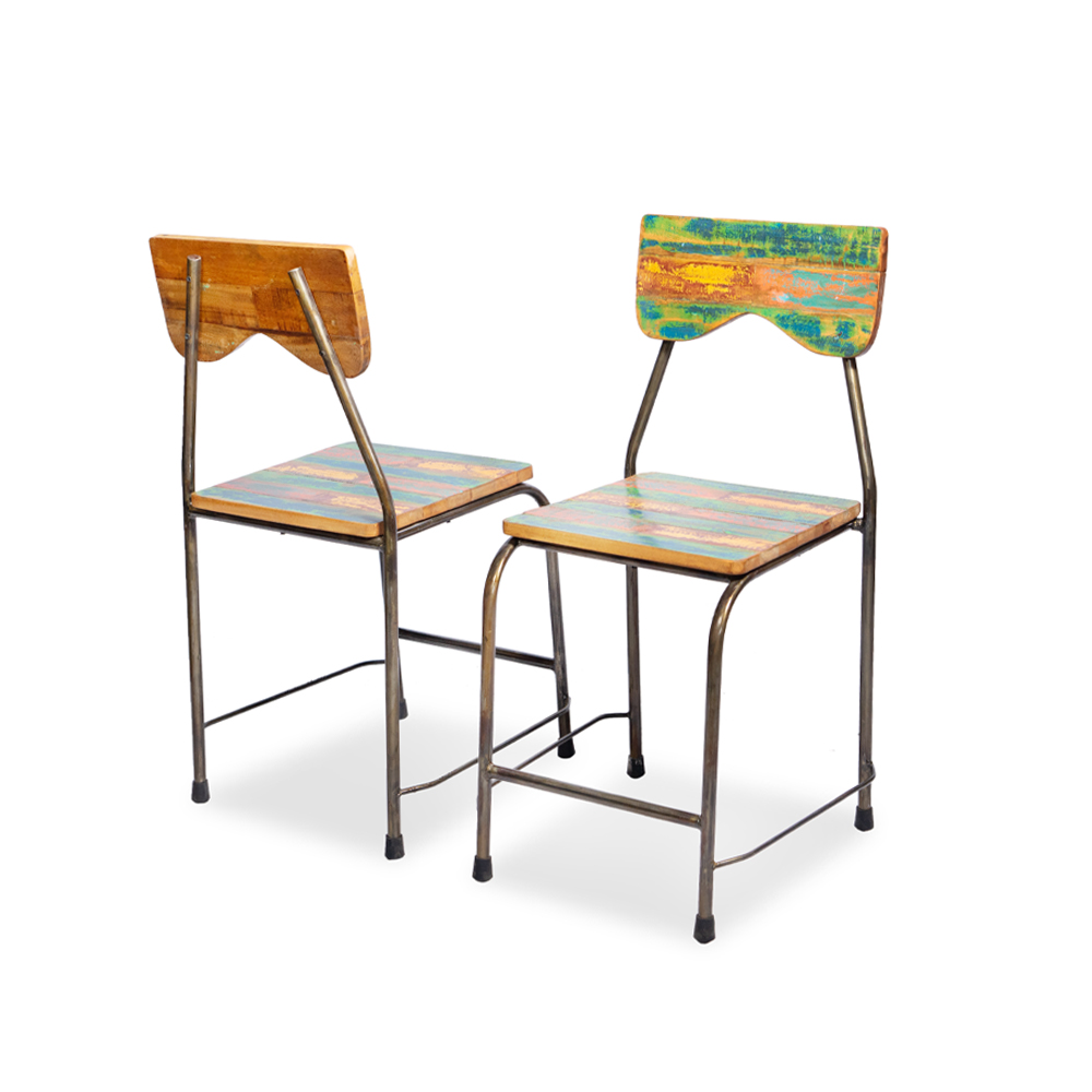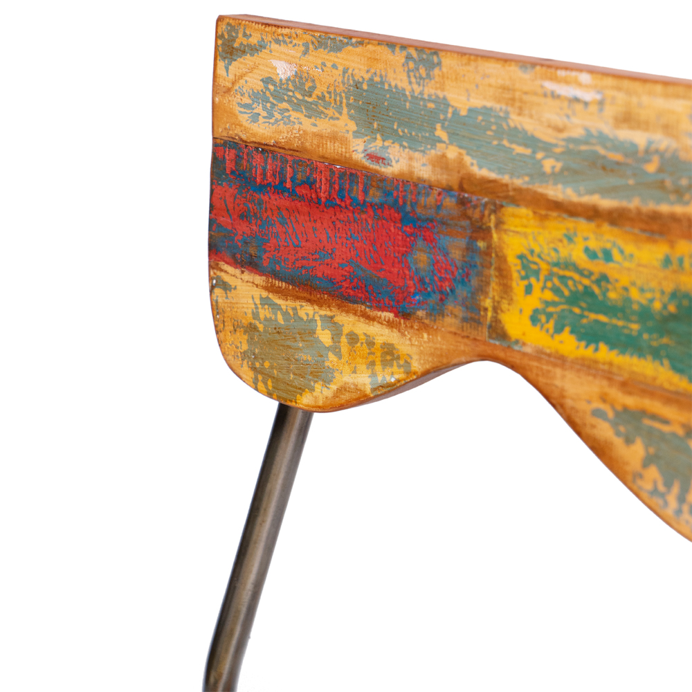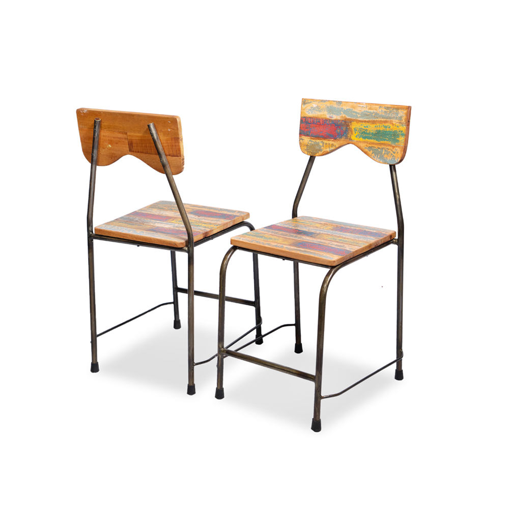 Sedia in ferro con schienale e seduta con lavorazione a mosaico in legno di teak recuperato dalle vecchie barche -20%