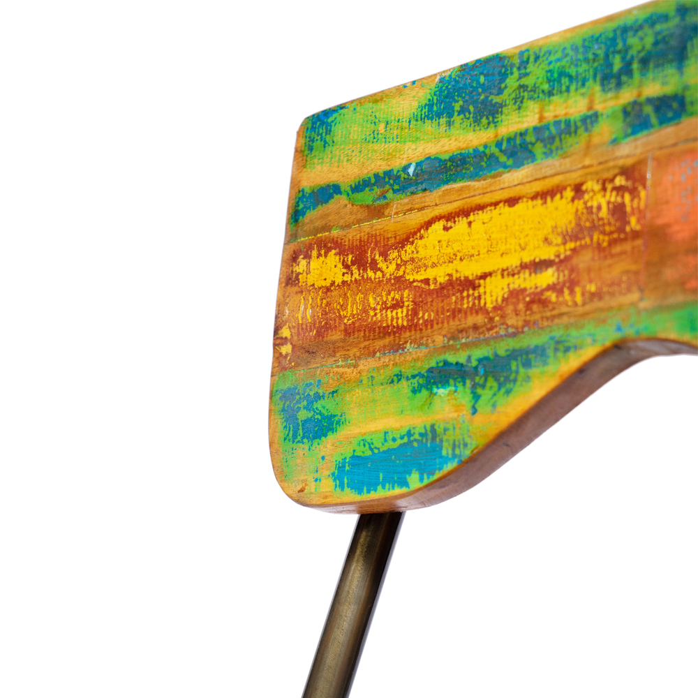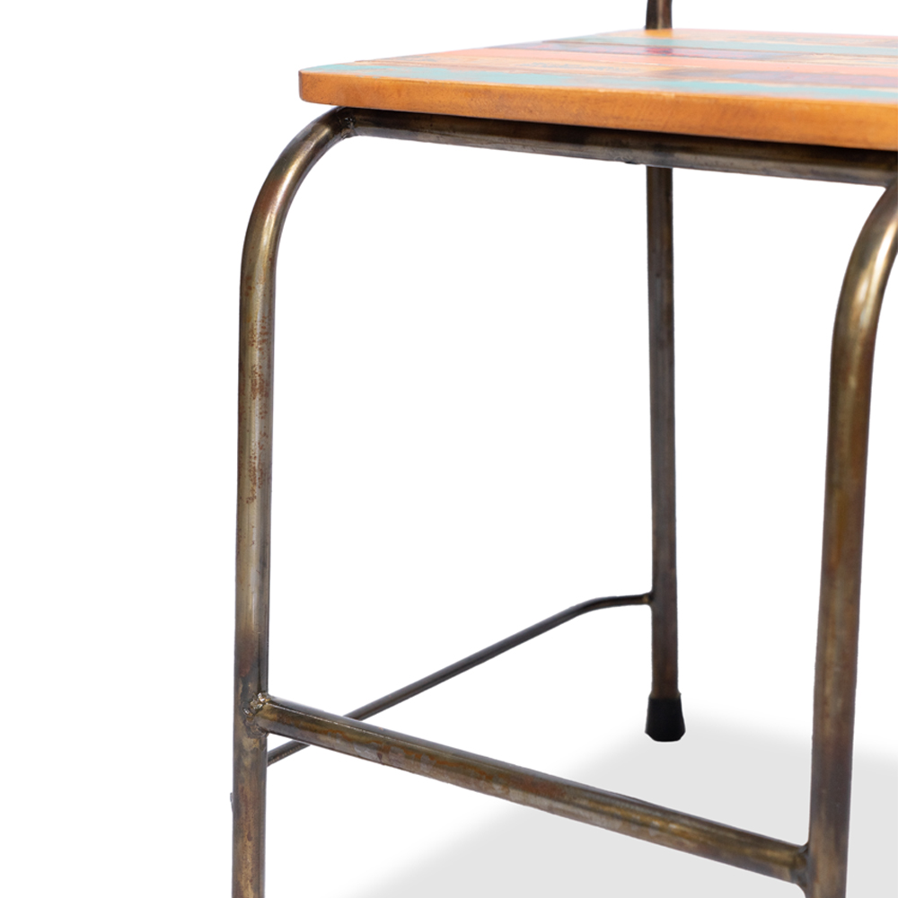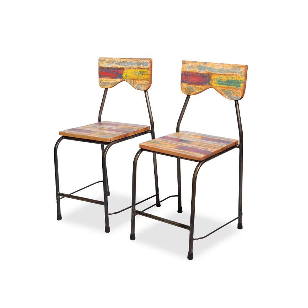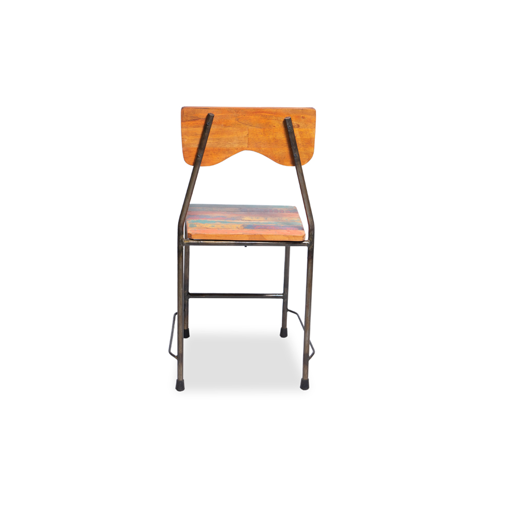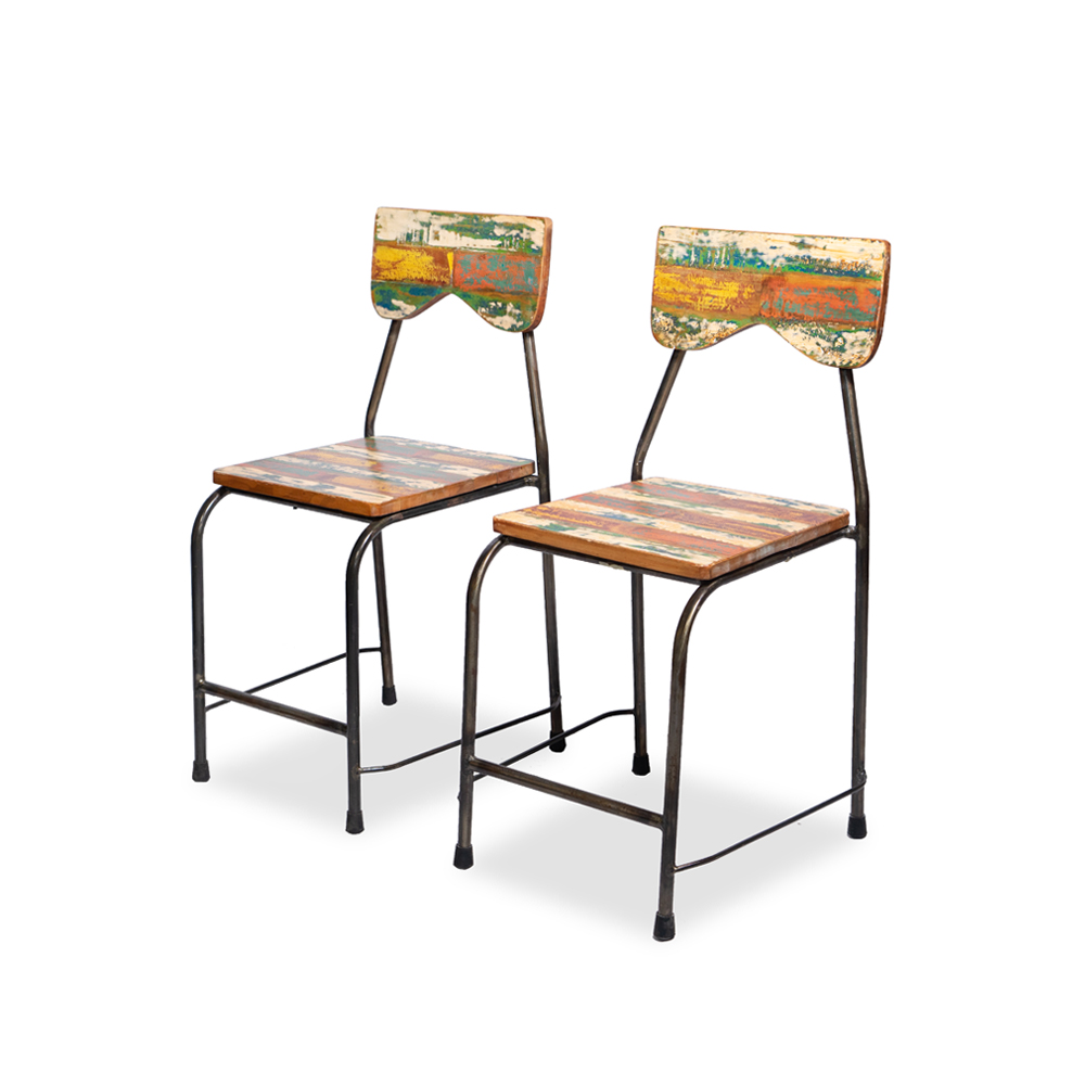 Sedia in ferro con schienale e seduta con lavorazione a mosaico in legno di teak recuperato dalle vecchie barche -20%