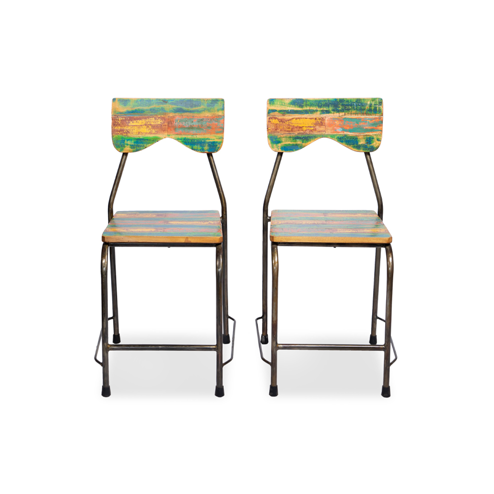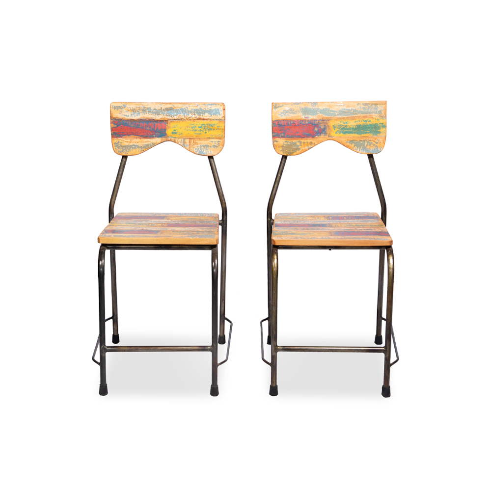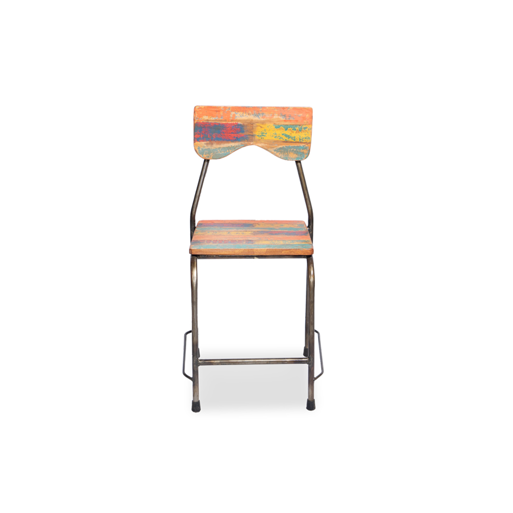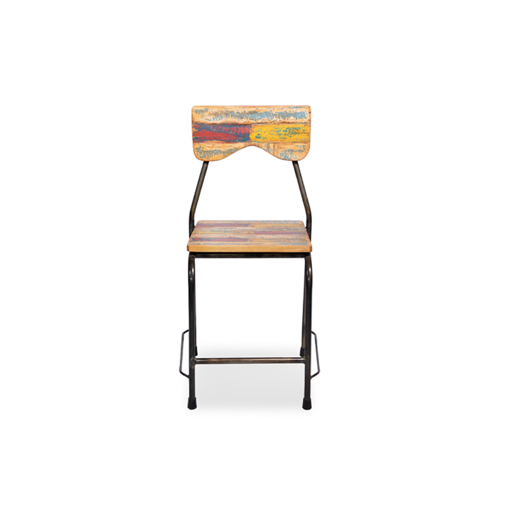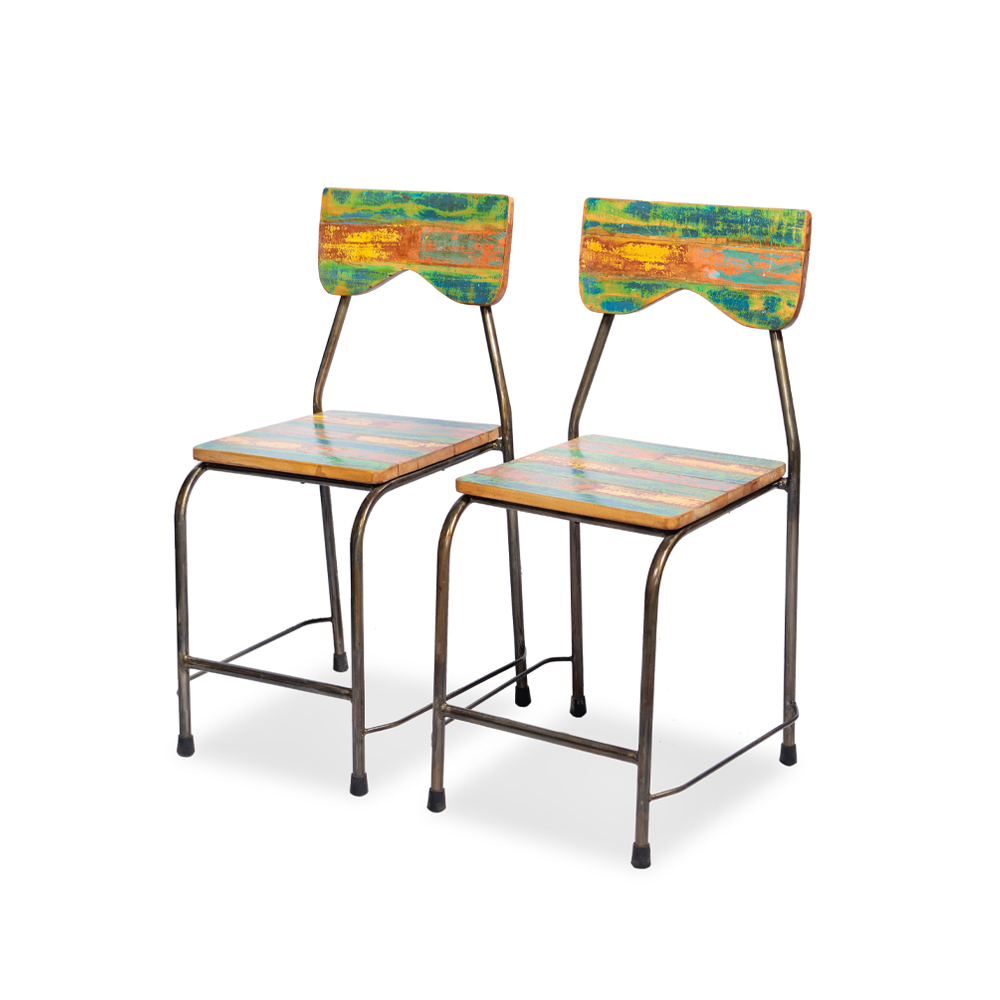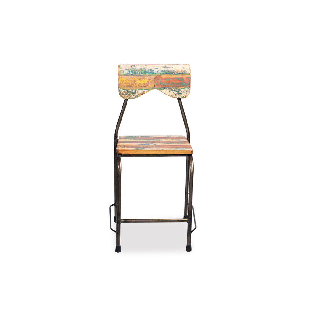 Sedia in ferro con schienale e seduta con lavorazione a mosaico in legno di teak recuperato dalle vecchie barche -20%
