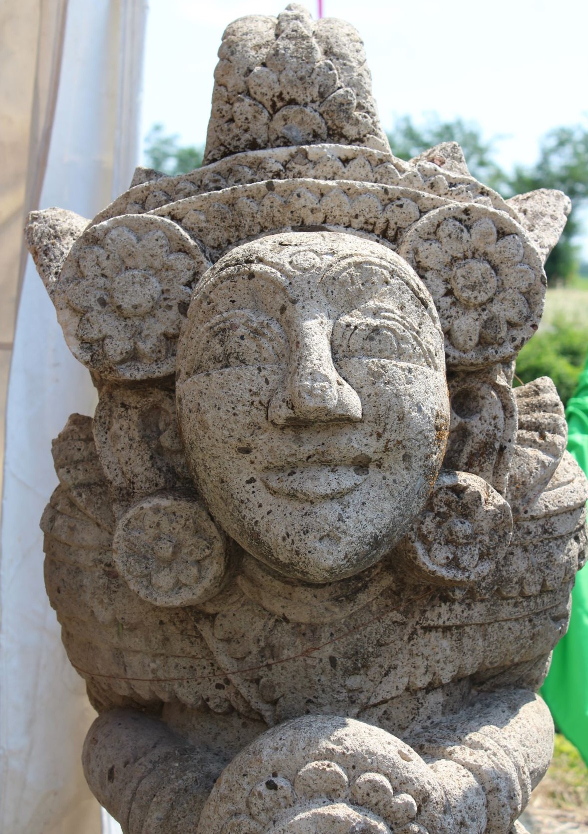 Osserva la mia danza, e lascia che ti narri le storie mistiche, leggende e insegnamenti spirituali dell’Isola di Bali, da dove provengo. La pietra che mi costituisce, scolpita e levigata a mano con precisione a inizi novecento, mostra il mio sorriso perfettamente inciso, gioioso di offrire il mio spettacolo. Portami con te e sarò il ponte, nelle tua dimora e nei tuoi sogni, tra l’umano e il divino.