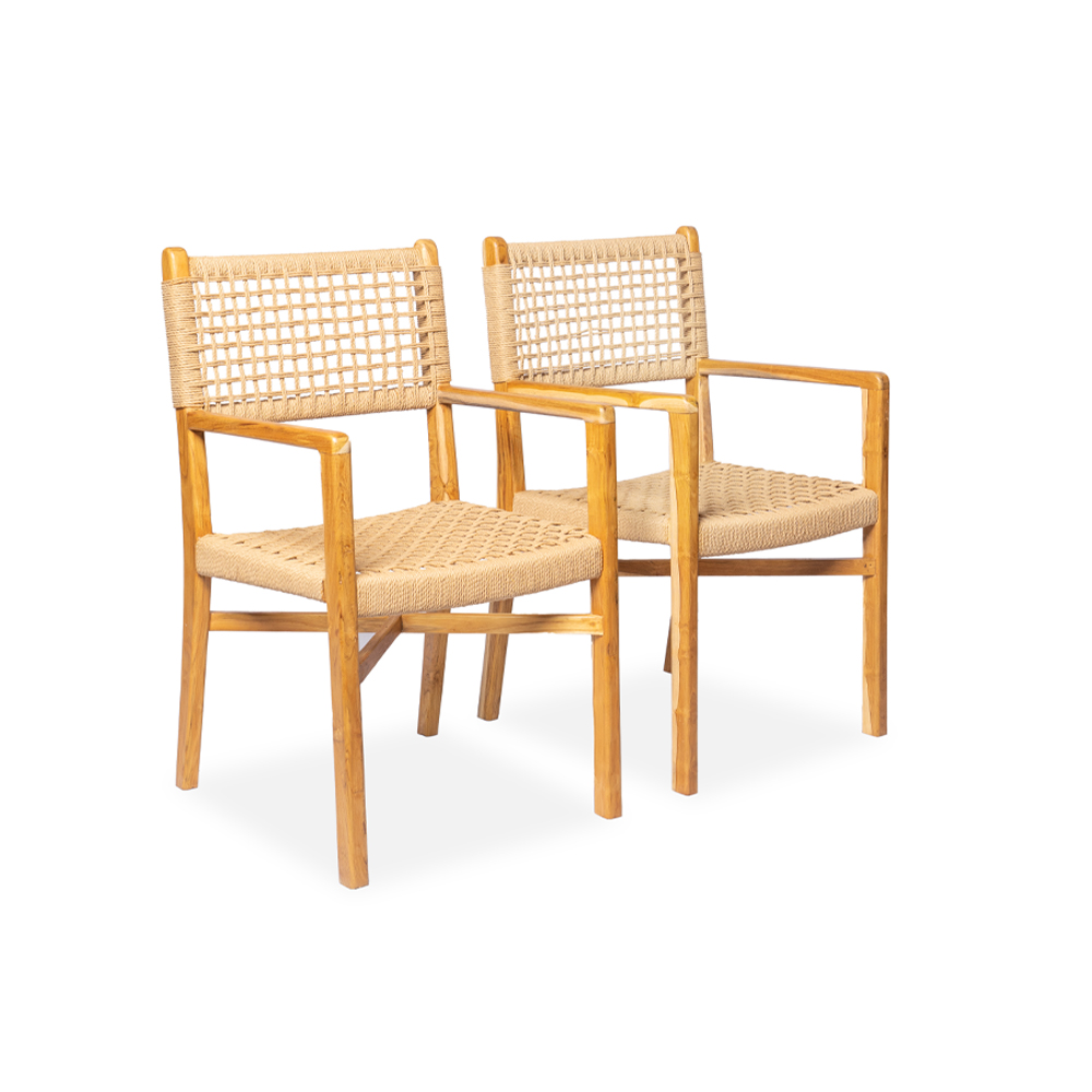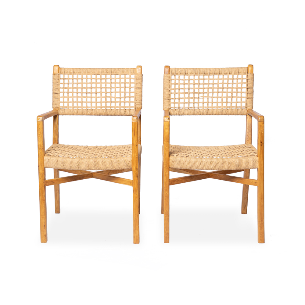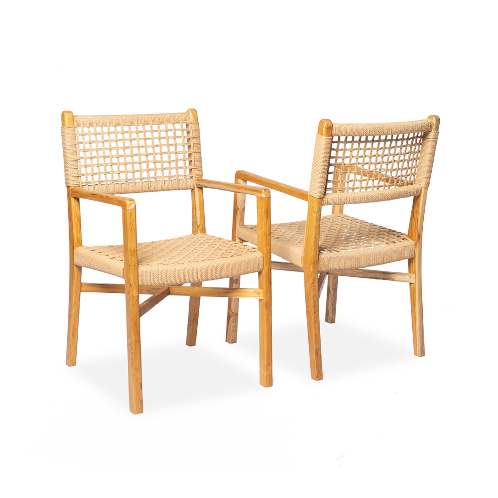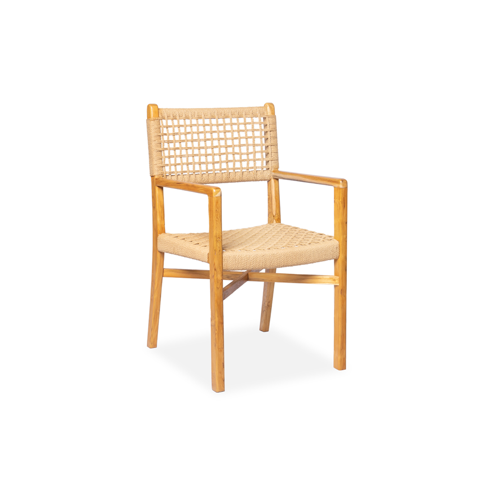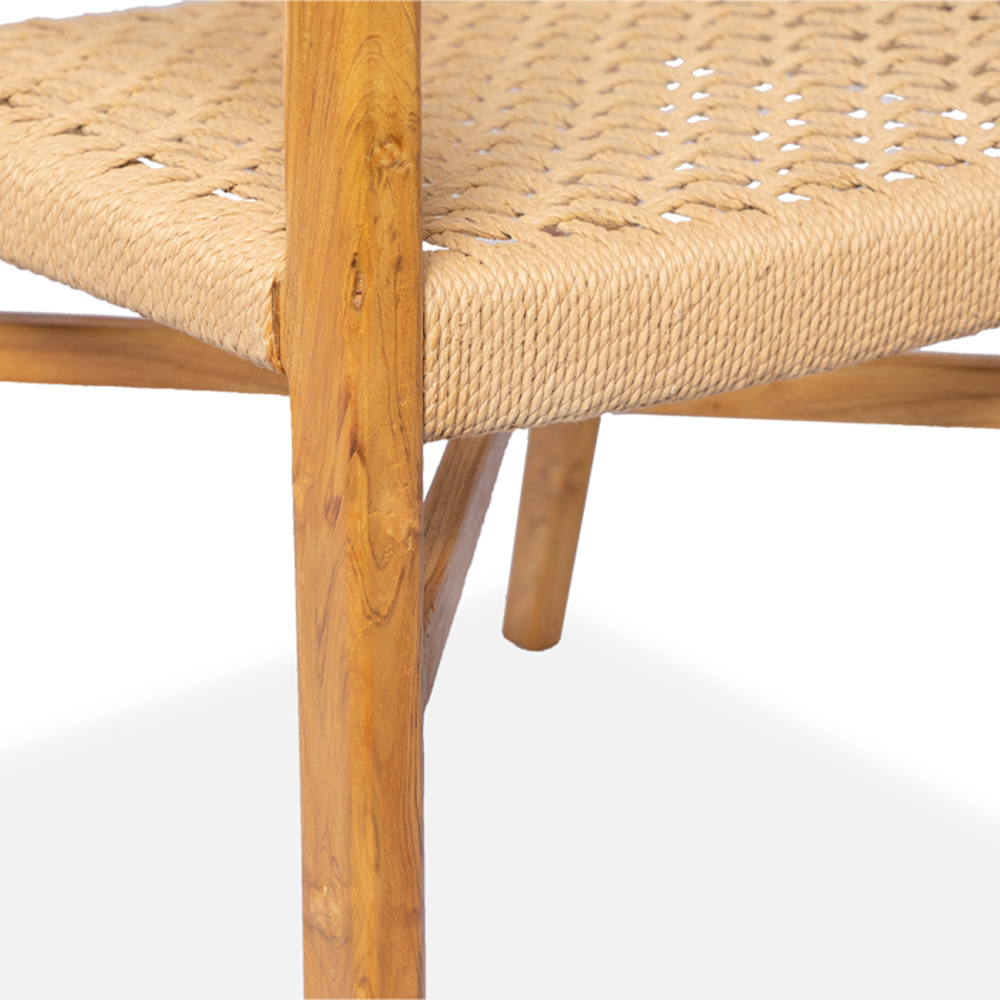 Sedia con braccioli intrecciate in fibra naturale con gambe in legno di teak #1307ID449 -18%