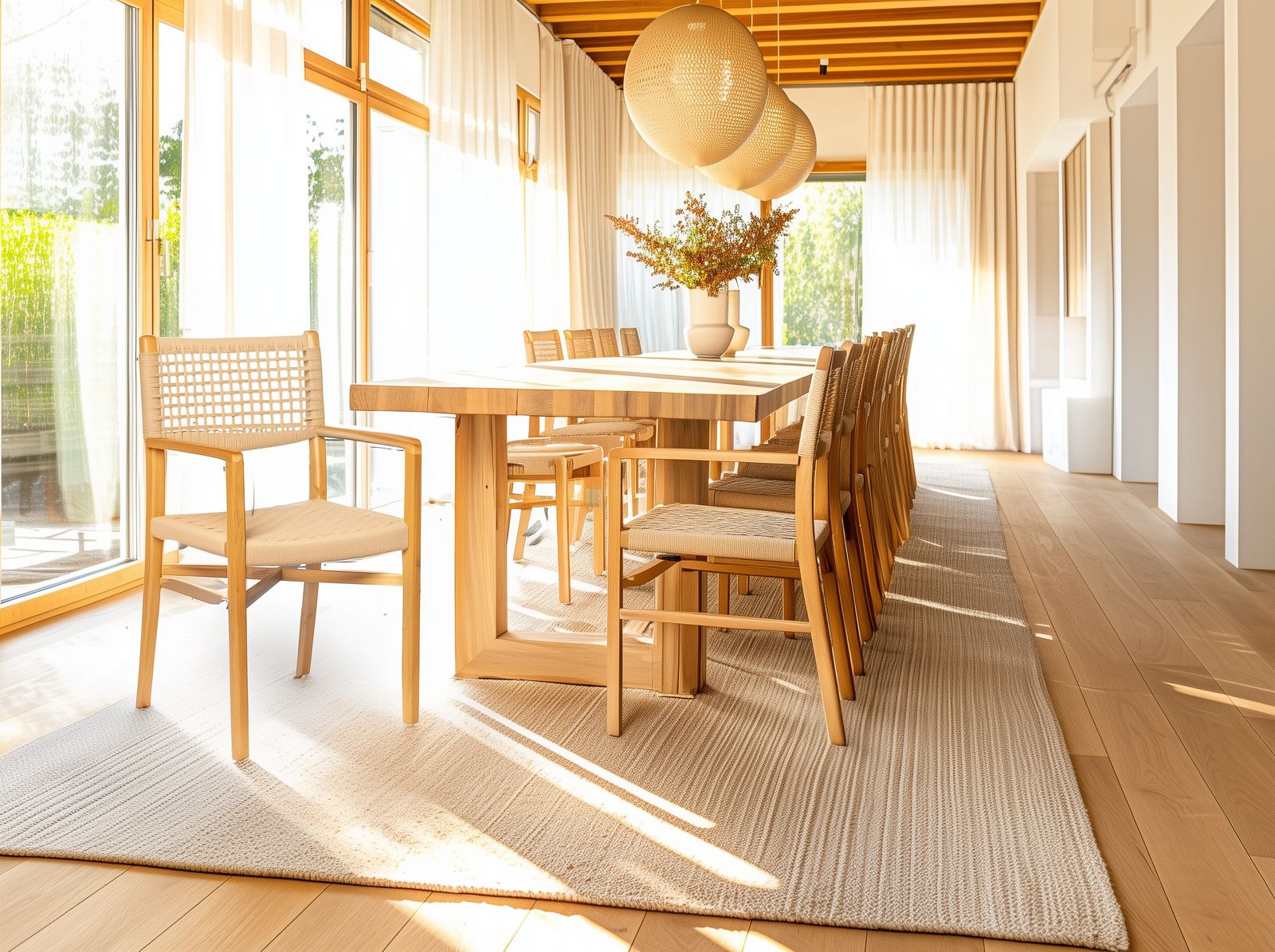 Sedia con braccioli intrecciate in fibra naturale con gambe in legno di teak #1307ID449