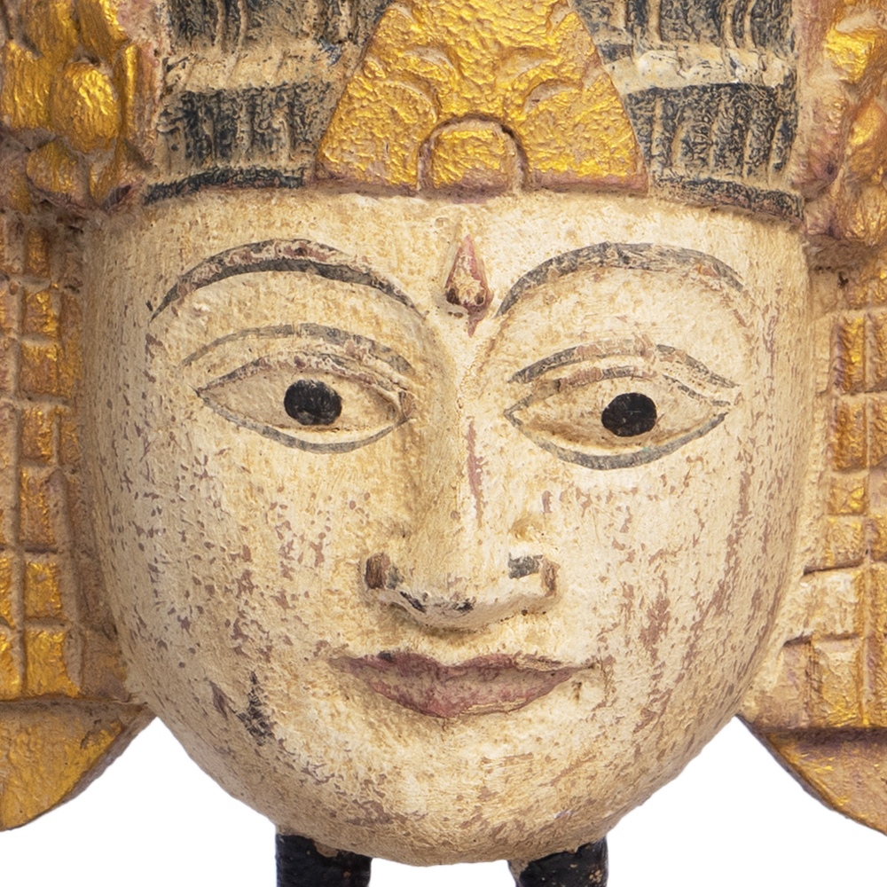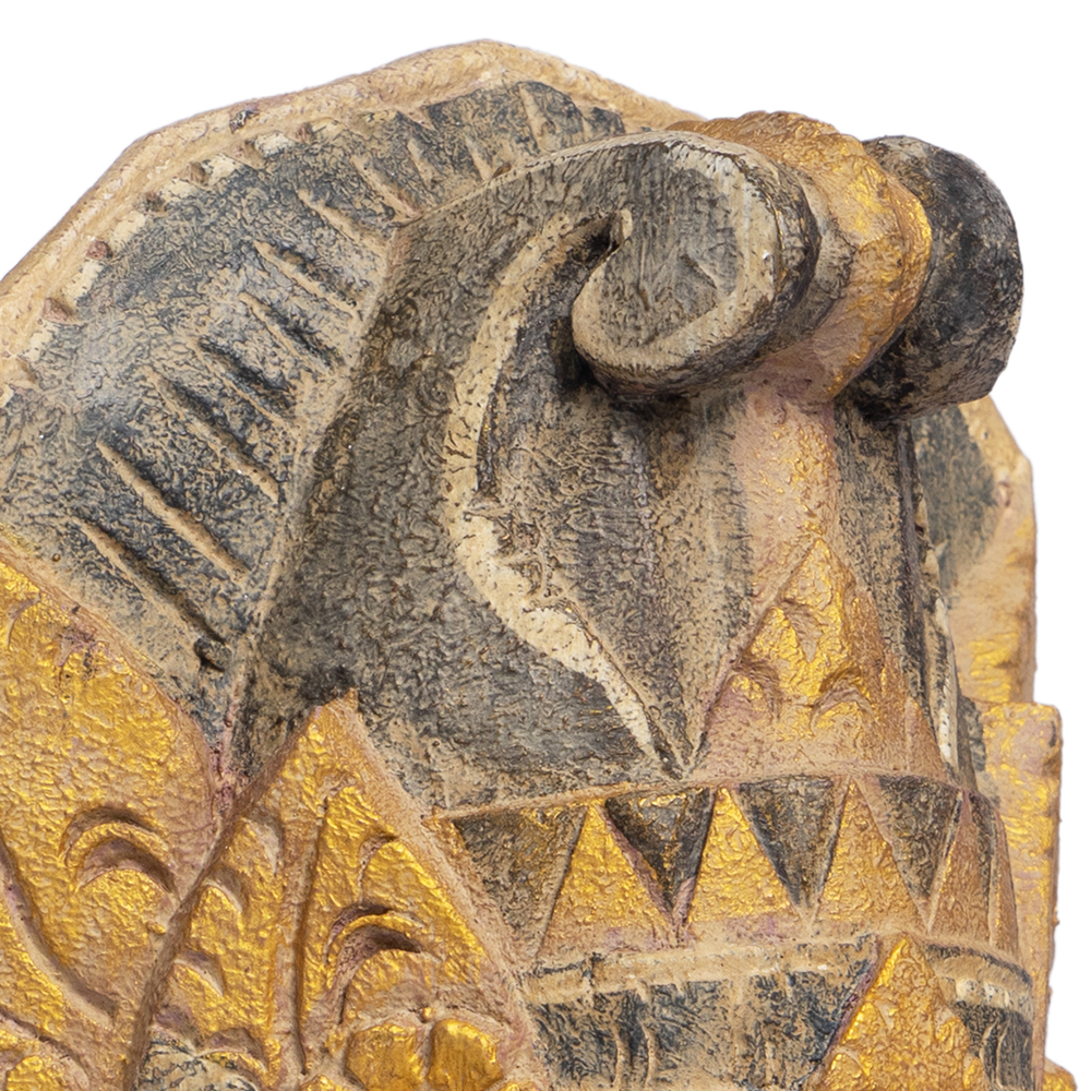 Provenienza: Rajasthan, India del Nord Dimensioni (massimo ingombro): Lunghezza (lenght) 152 cm Larghezza (width) 64 cm Altezza (height) 260 cm Dimensioni reali di passaggio (width of the doorway): L 81 x H 168 cm Materiali: Legno massello di teak con inserti e borchie in ottone Lavorazioni: Interamente scolpito e inciso a mano con motivi floreali e geometrici tipici dell’architettura rajput; decorazioni in ottone cesellato e patina originale dalle sfumature turchesi e dorate. Struttura: Portale completo di architrave, colonne laterali e doppia anta centrale; struttura monumentale e autoportante. Autenticità: Pezzo autentico del XIX secolo, proveniente da un’antica dimora nobiliare del Rajasthan, restaurato nel rispetto delle tecniche e dei materiali originali. Perché sceglierlo? 1. È un portale d’ingresso autentico, testimonianza della grande tradizione architettonica indiana. 2. La lavorazione a mano e la ricchezza dei dettagli la rendono un’opera d’arte scultorea oltre che un elemento d’arredo. 3. Il legno di teak, resistente e nobile, garantisce solidità e durata nel tempo. 4. È un pezzo capace di trasformare qualsiasi spazio in un ambiente dal fascino regale e senza tempo. Sono il portale verso i vostri sogni. Il mio legno di teak venne intagliato nel '700, quando un ricco maharajat decise di inserirmi come ingresso nella sua prosperosa dimora. Chiunque varcasse la mia soglia, rimaneva ammaliato dalla precisione dei mie intagli, realizzati dai più capaci artigiani di Ahmedabad, nello stato del Gujarat, e dai miei preziosi e rari dettagli in brass. Motivi geometrici, riferimenti ai fiori e alla natura; al centro del fregio sulla mia testata invece, potrete riconoscere Ganesha, il dio dalla testa di elefante, colui che rimuove gli ostacoli dal vostro cammino. Inoltre, numerose campanelle sono state ricavate dal mio legno, ad augurare buon auspicio a chiunque varacasse la mia soglia. Sono maestoso e antico, museale. La mia bellezza e unicità sono state preservate fino ad oggi, così che, se mi inserirete nei vostri ambienti o come ingresso, potrete sognare di trovarvi in un ricco palazzo indiano ogni volta che entrerete in casa vostra. Importato da Colori dal Mondo s.r.l.