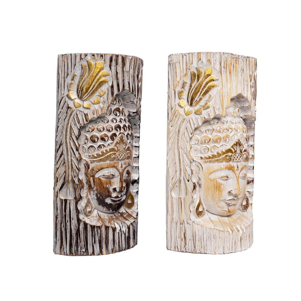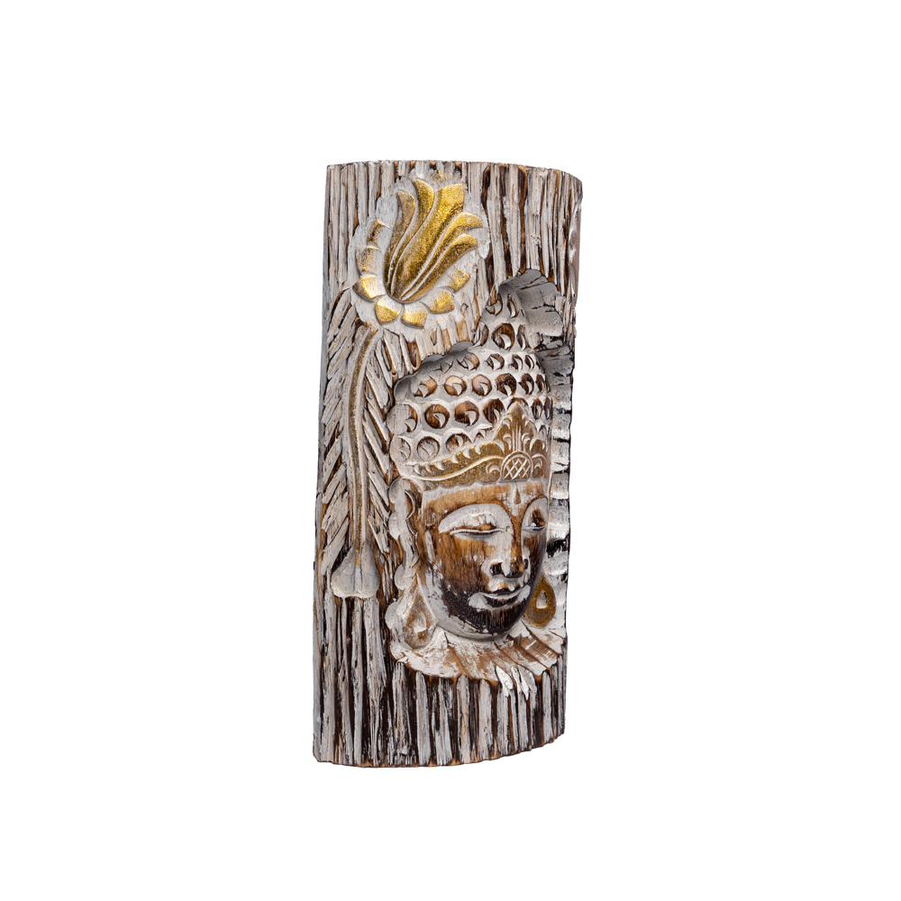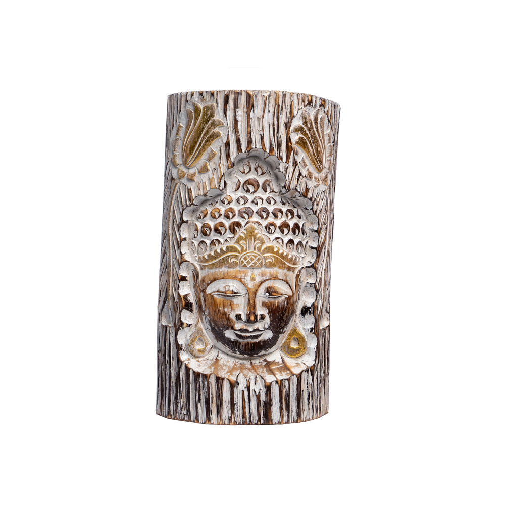 Tronco con intaglio Viso di Buddha in legno di albasia -23%
