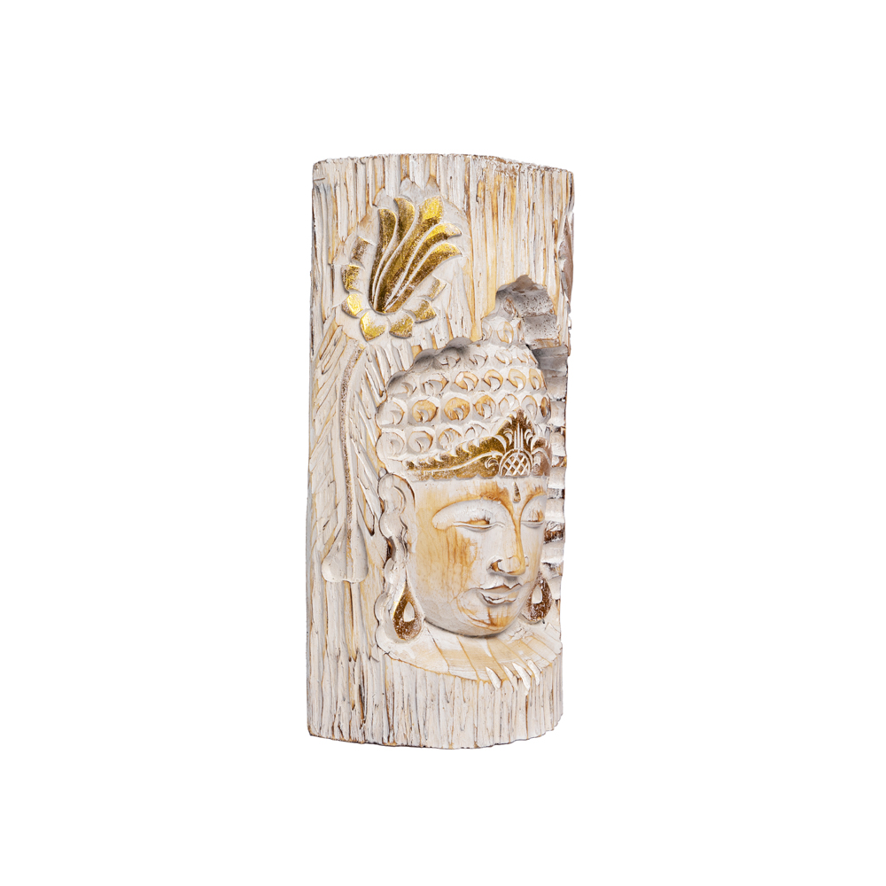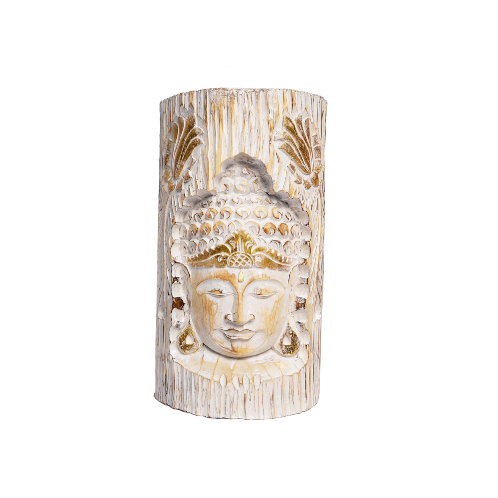 Tronco con intaglio Viso di Buddha in legno di albasia