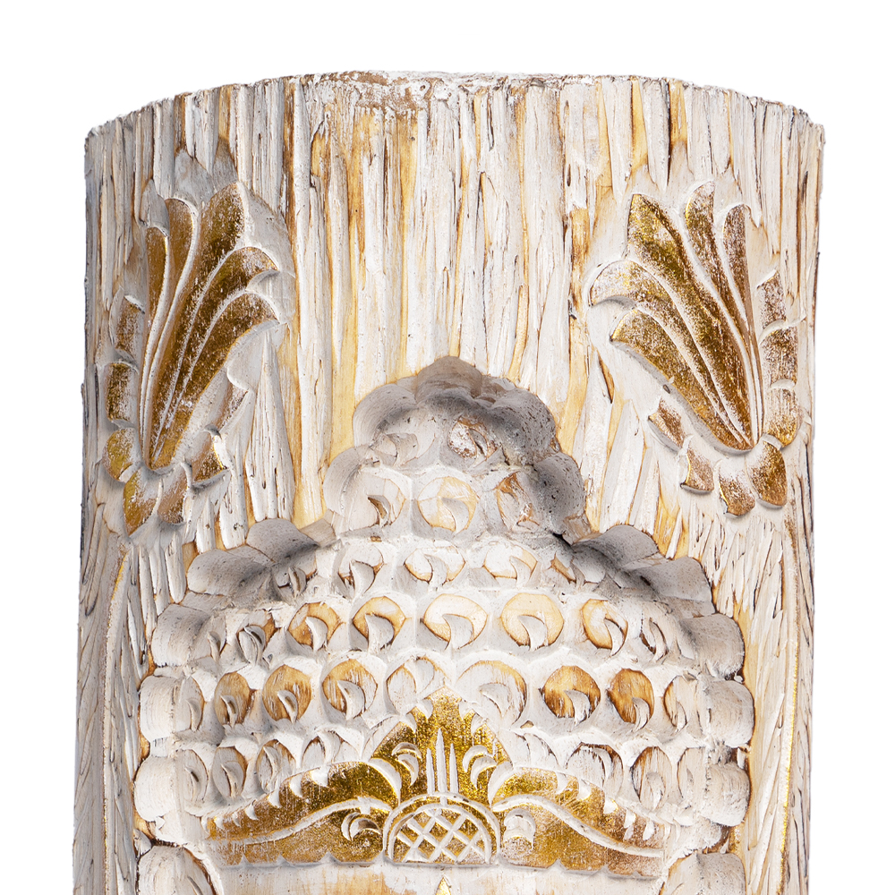 Provenienza: India del Nord, Rajasthan Dimensioni (massimo ingombro): lunghezza cm 78 x profondità cm 56 x altezza cm 196 Materiali: Legno massello di teak, proveniente da strutture architettoniche dismesse e restaurato con tecniche tradizionali. Finitura naturale a cera che ne esalta il tono caldo e le venature originali. Lavorazioni: Struttura interamente intagliata a mano, con decori floreali, motivi geometrici e cornici tipiche delle finestre e portali dei palazzi Rajput. Il legno recuperato viene pulito, trattato e assemblato manualmente, mantenendo la patina autentica e le tracce del tempo. Finitura con oli e cere naturali che proteggono il materiale senza alterarne la bellezza originaria. Struttura: Libreria con quattro ripiani interni racchiusi da un’imponente cornice scolpita a rilievo. La cornice superiore, con fregi traforati, richiama le tipiche aperture architettoniche indiane (jharokha), rendendo il pezzo non solo funzionale ma anche altamente decorativo. La base solida e il frontale riccamente lavorato conferiscono equilibrio tra robustezza e raffinatezza estetica. Autenticità: Ogni esemplare è un pezzo unico, poiché realizzato con cornici originali del XIX-XX secolo provenienti da residenze nobiliari del Rajasthan. Le imperfezioni, le differenze di tono e i segni d’uso sono parte integrante della sua storia e ne certificano la provenienza e la lavorazione artigianale. Perché sceglierla? Un pezzo di storia: racchiude frammenti autentici dell’architettura tradizionale indiana. Lavorazione artigianale: ogni dettaglio scolpito è il risultato di ore di lavoro manuale e maestria tramandata. Eleganza etnica e senza tempo: perfetta per ambienti contemporanei, rustici o eclettici. Sostenibilità e recupero: realizzata con legno antico riutilizzato, in armonia con l’ambiente e la memoria del passato. Io, raffinata libreria, sarò come finestra sui vostri oggetti personali. Proprio così come sono stata finestra sulla meravigliosa città dorata di Jaisalmer. La mia facciata infatti, è composta da diverse parti recuperate da lussureggianti palazzi di maharaja, al nord dell'antica India. Osservate i miei intagli, resi nel dettaglio da mani artigiane nel mio pregiato legno di teak: simbologie geometriche, foglie, fiori e forme sinuose. Ogni centimetro della mia superficie è curato in ogni particolare e ogni movimento. Inseritemi nei vostri spazi e riempite i miei eleganti ripiani con i vostri oggetti, saranno incorniciati nella danza dei miei dettagli, raffinati e selvaggi come la Natura che rappresentano. Importato da Colori dal Mondo s.r.l.