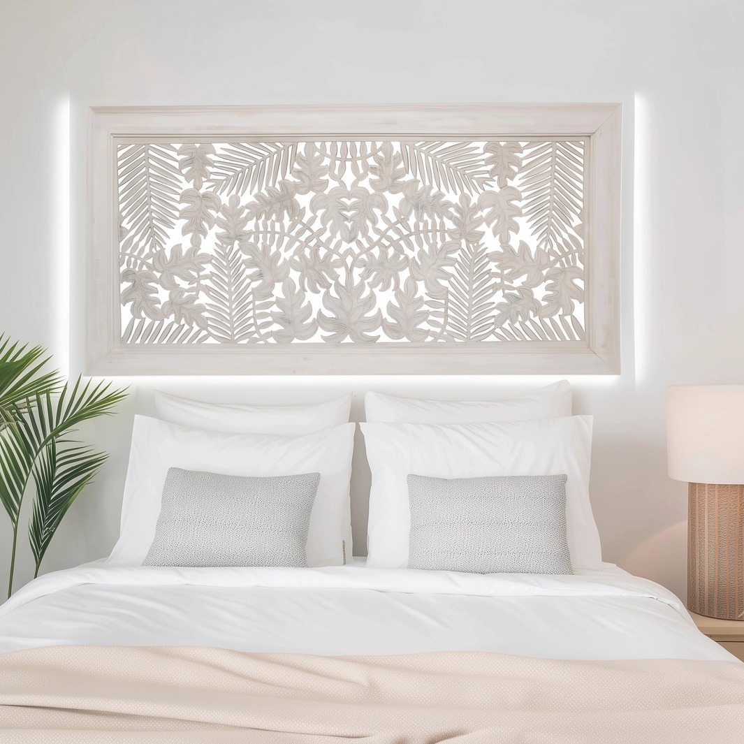Pannello balinese in legno di durian con cornice "mod. foglie" cm 200 x cm 100 #AB21