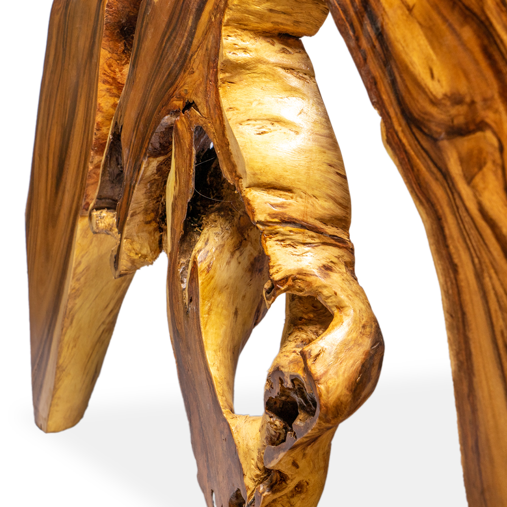 Dimensioni: lunghezza 350 cm x la profondità cambia poichè è una radice: il top ha una profondità in alcuni punti di 77 / 105 / 112 cm , mentre la gamba ha una profondità di massimo ingombro di 152 cm x altezza 80 cm