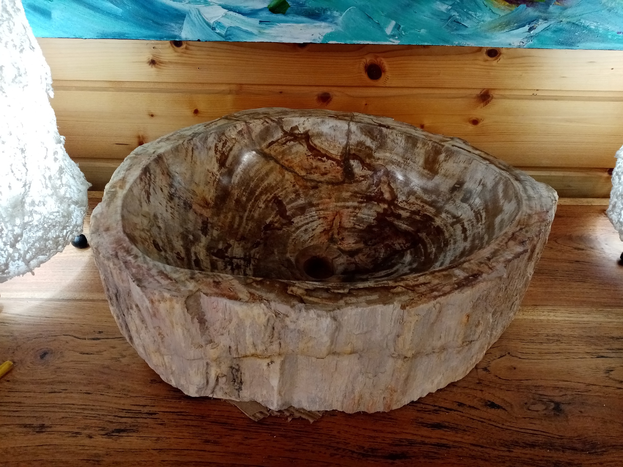Lavandino in legno fossile pietrificato #2