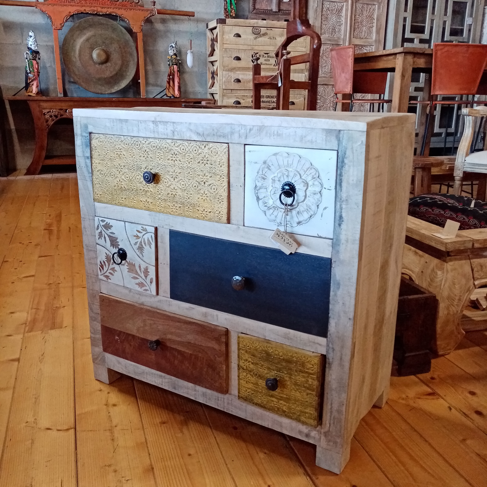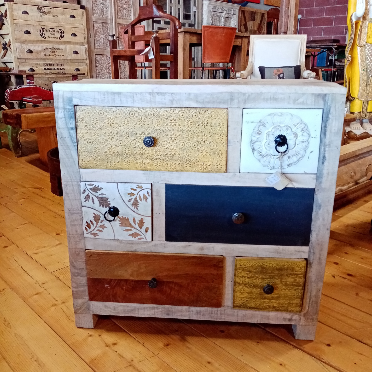 Cassettiera indiana in legno di mango intagliata e dipinta a mano con 6 cassetti #1057IN690 -19%