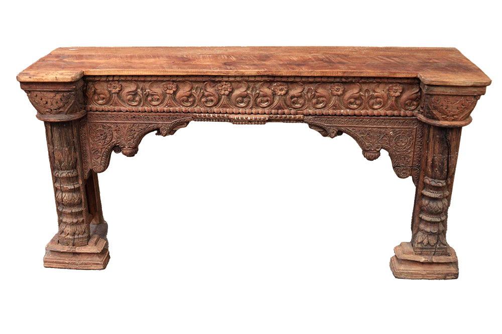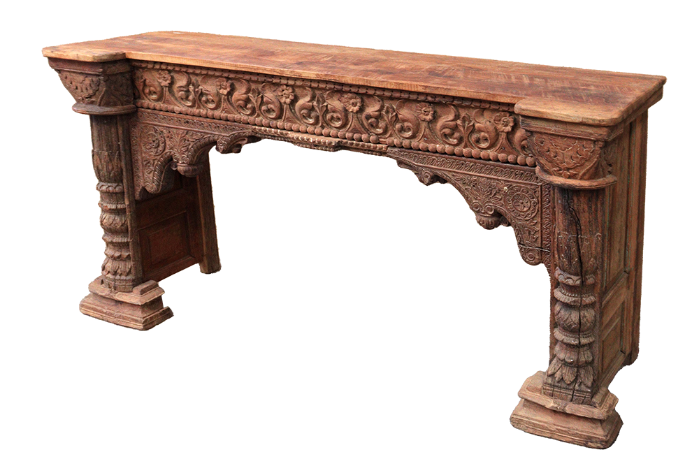 Consolle indiana in legno di teak realizzata con frontale recuperato da antiche cornici di palazzi #3096IN2790