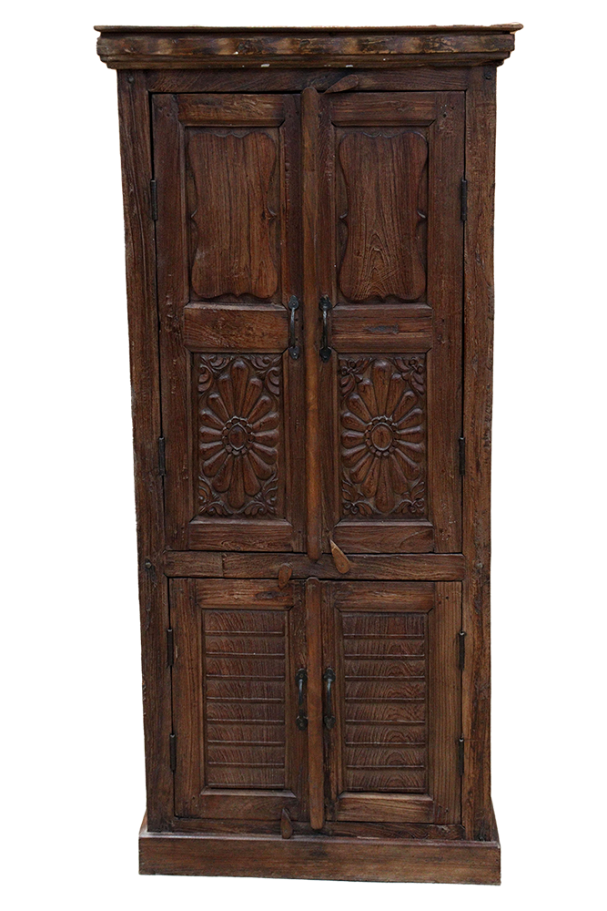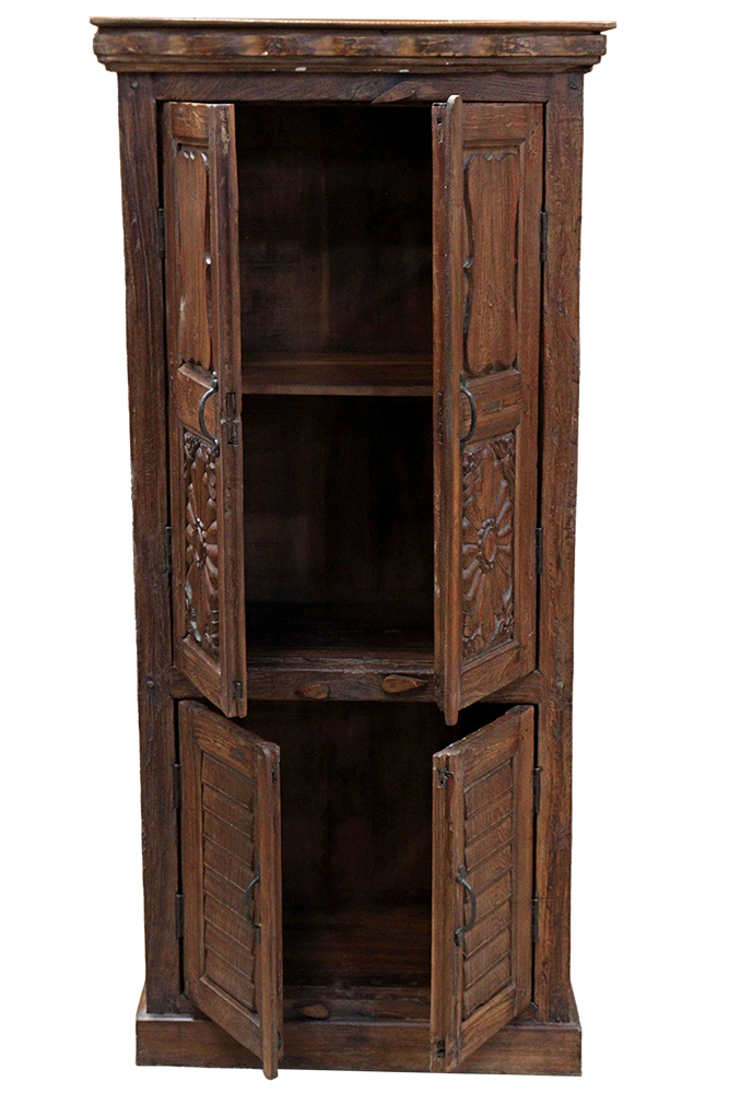 Armadio / Credenza alta antica in legno di teak con 2 ante recuperate da antico portale #3093IN1490