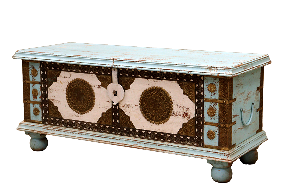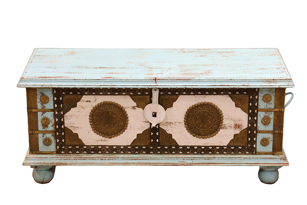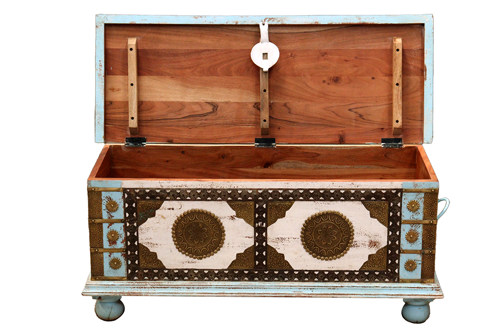 Baule indiano in legno di palissandro indiano con intarsi in ottone forgiati a mano #3100IN690 -19%