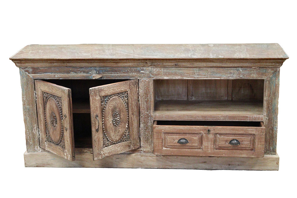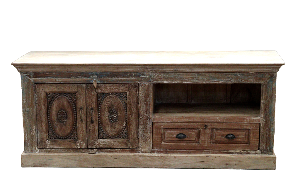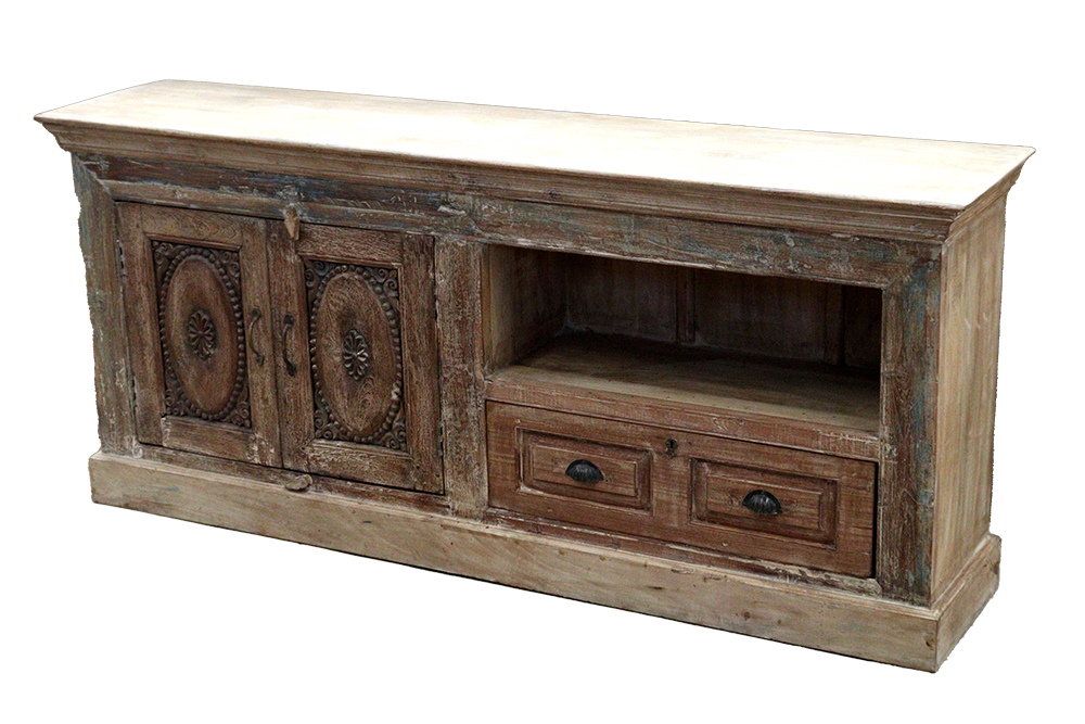 Credenza / Porta TV indiano in legno di teak recuperato da cornici ed ante da finestre da antichi palazzi storici del Rajasthan #3111IN1790 -18%