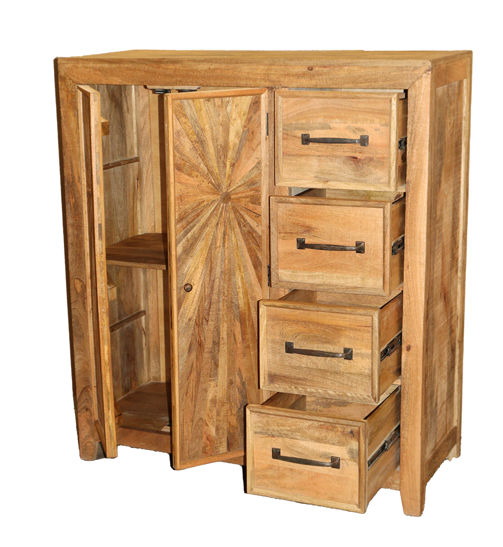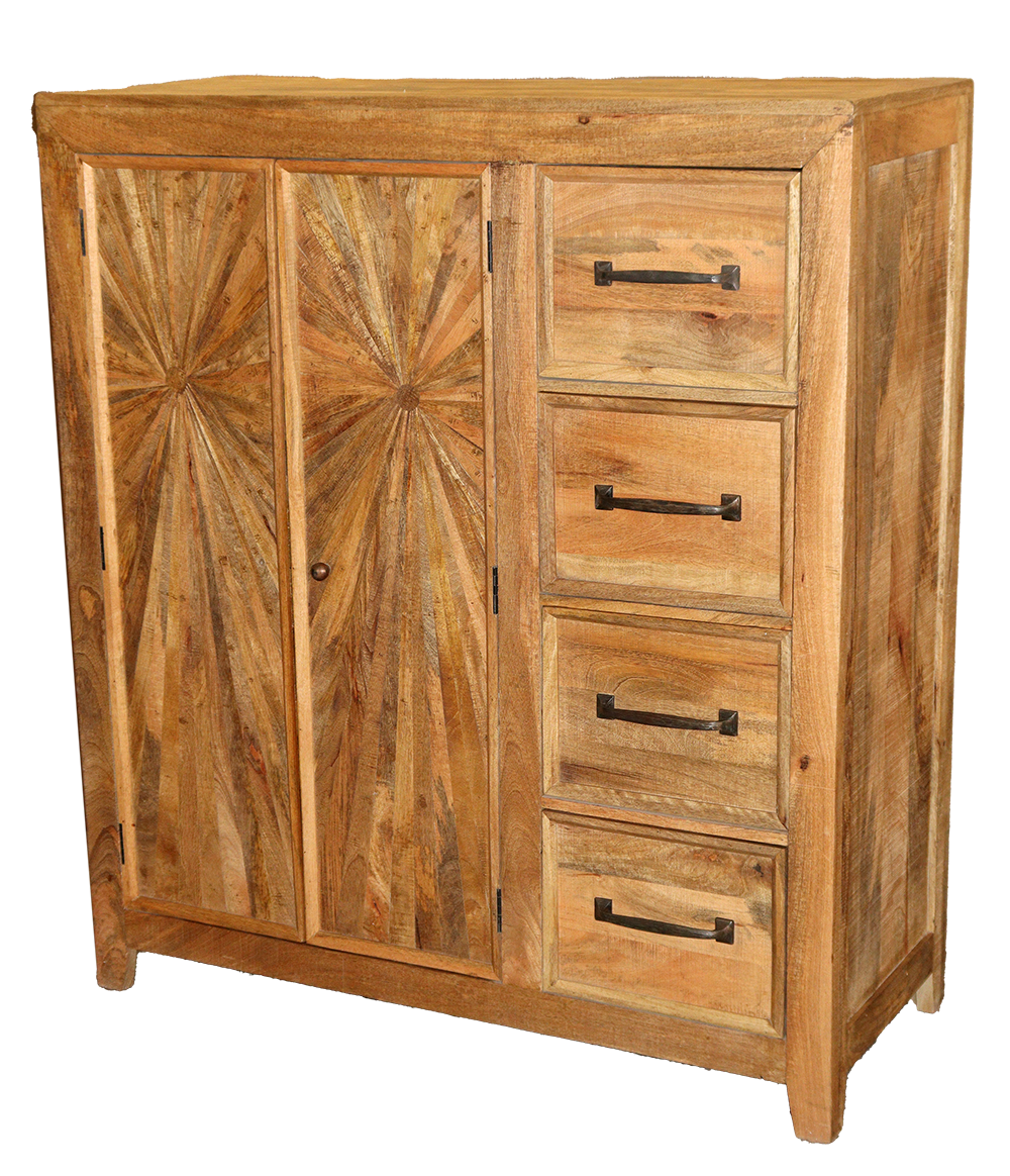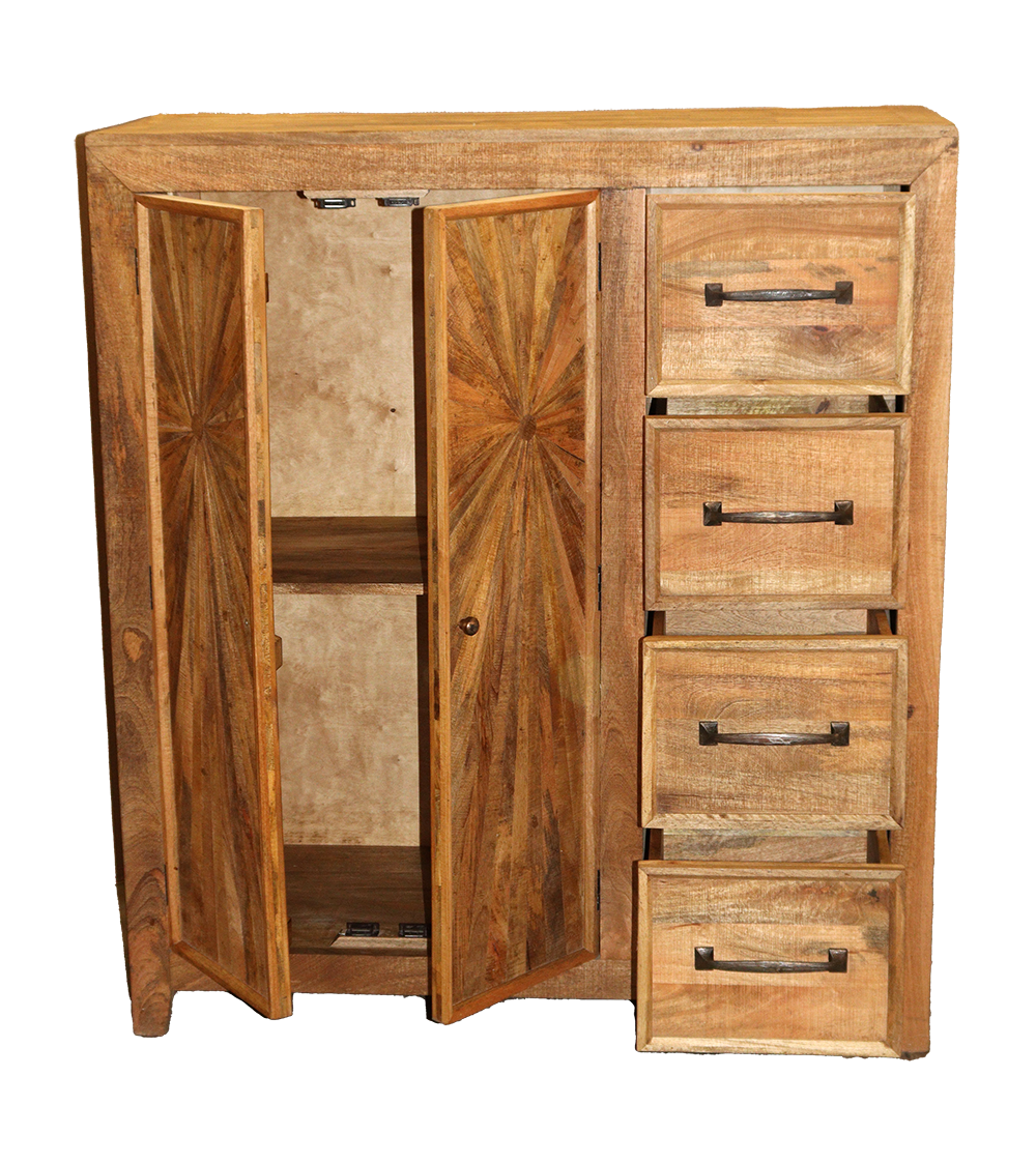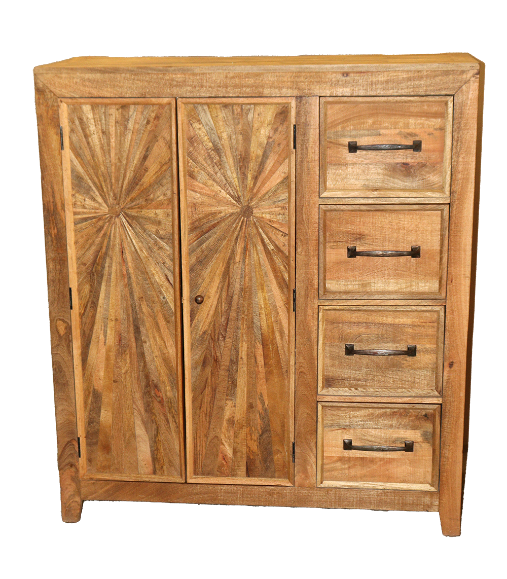 Credenza alta indiana "mod. Sun" in legno di mango finitura antichizzata con 4 cassetti e 2 ante #3122IN1990