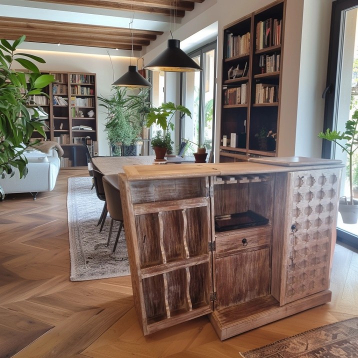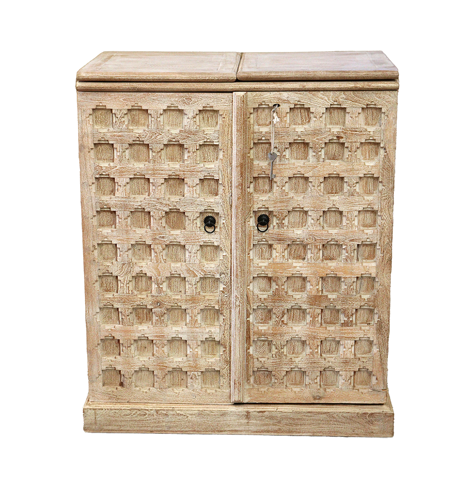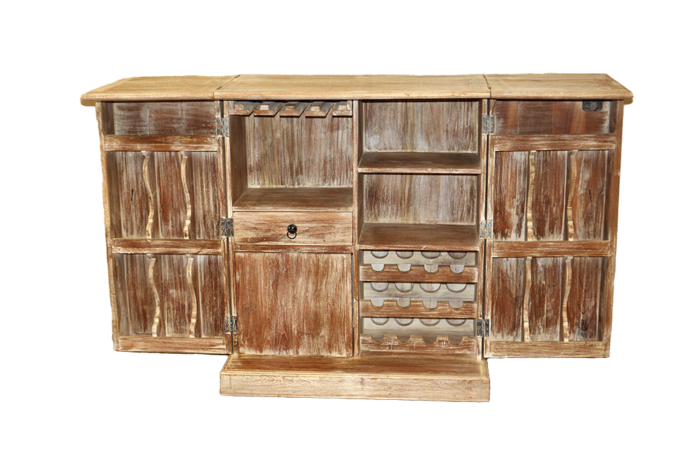 Mobile bar in legno di teak decapato in bianco vecchio portale
