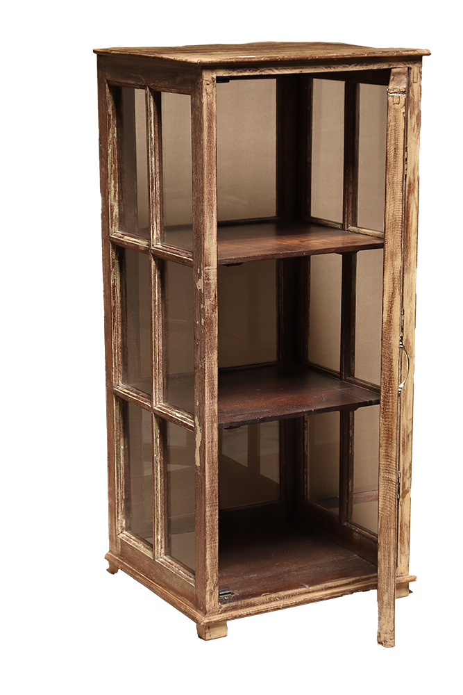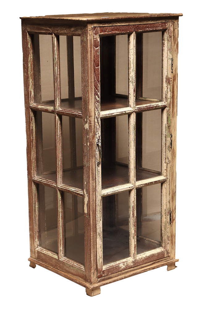 Vetrinetta in legno di teak recuperato da vecchie costruzioni con 1 anta #3227IN1490