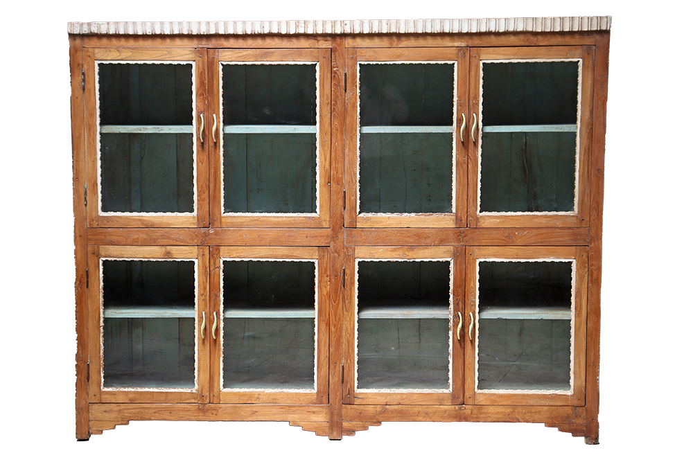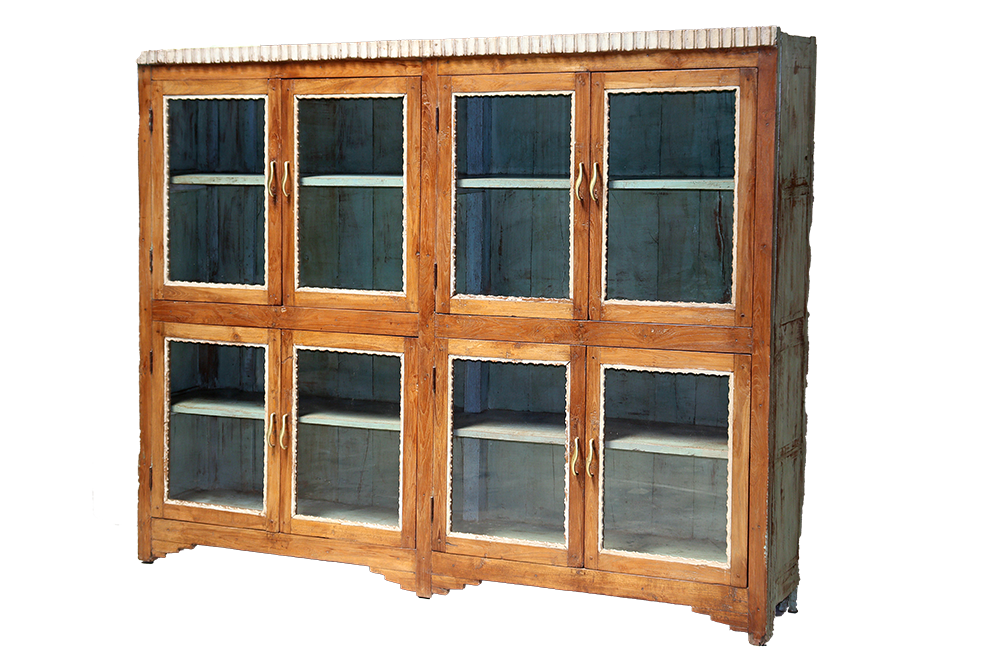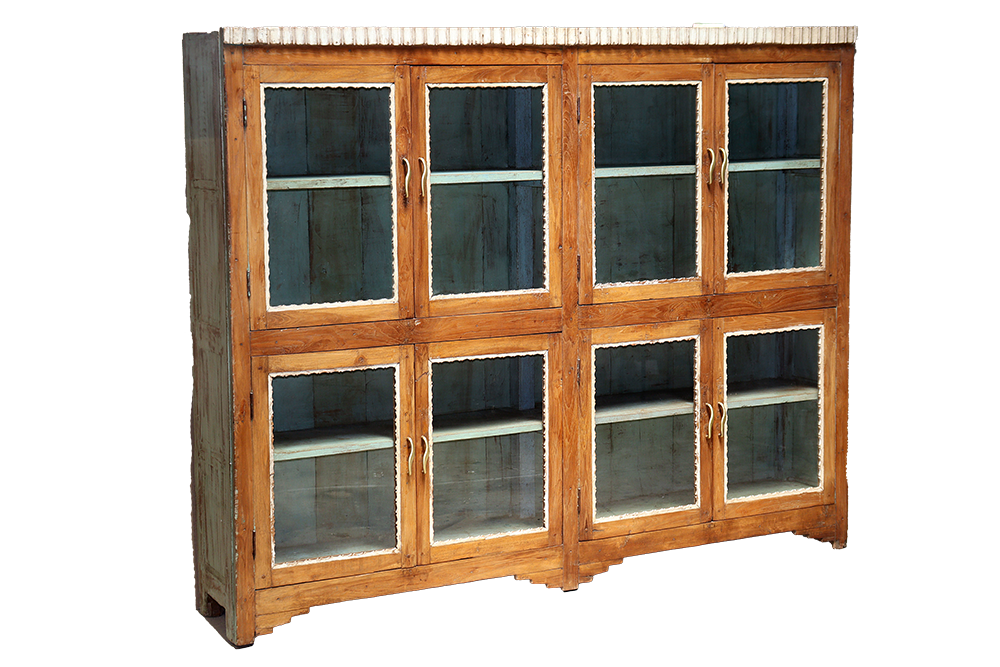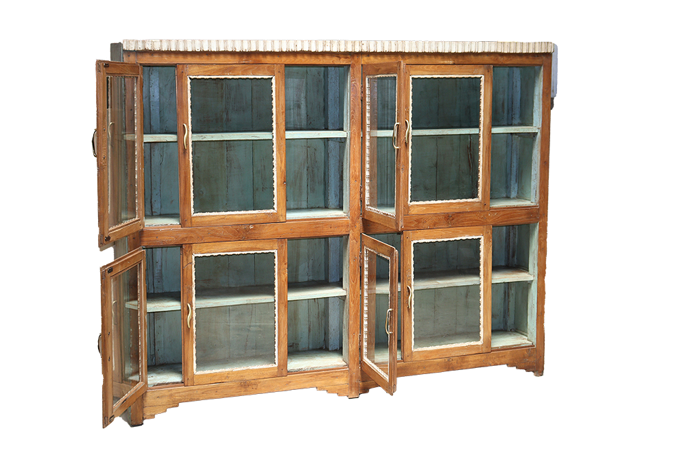 Vetrina antica indiana di fine 800 in legno di teak con 8 ante restaurata con i colori originali #3234IN2990 -18%
