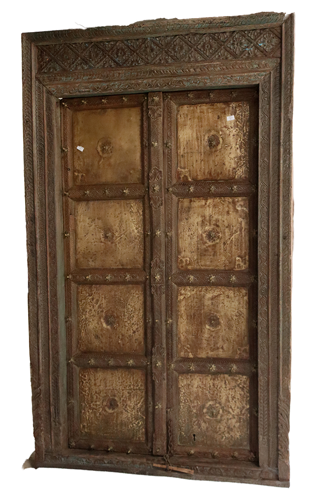 Porta antica in legno di teak con intarsi in ottone #RB4 -18%