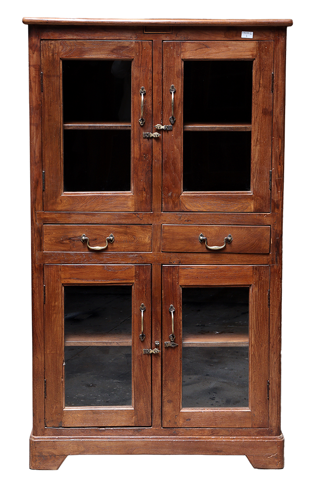 Vetrinetta originale antica fine '800 con 4 ante e 2 cassetti in legno di teak #3256IN2790